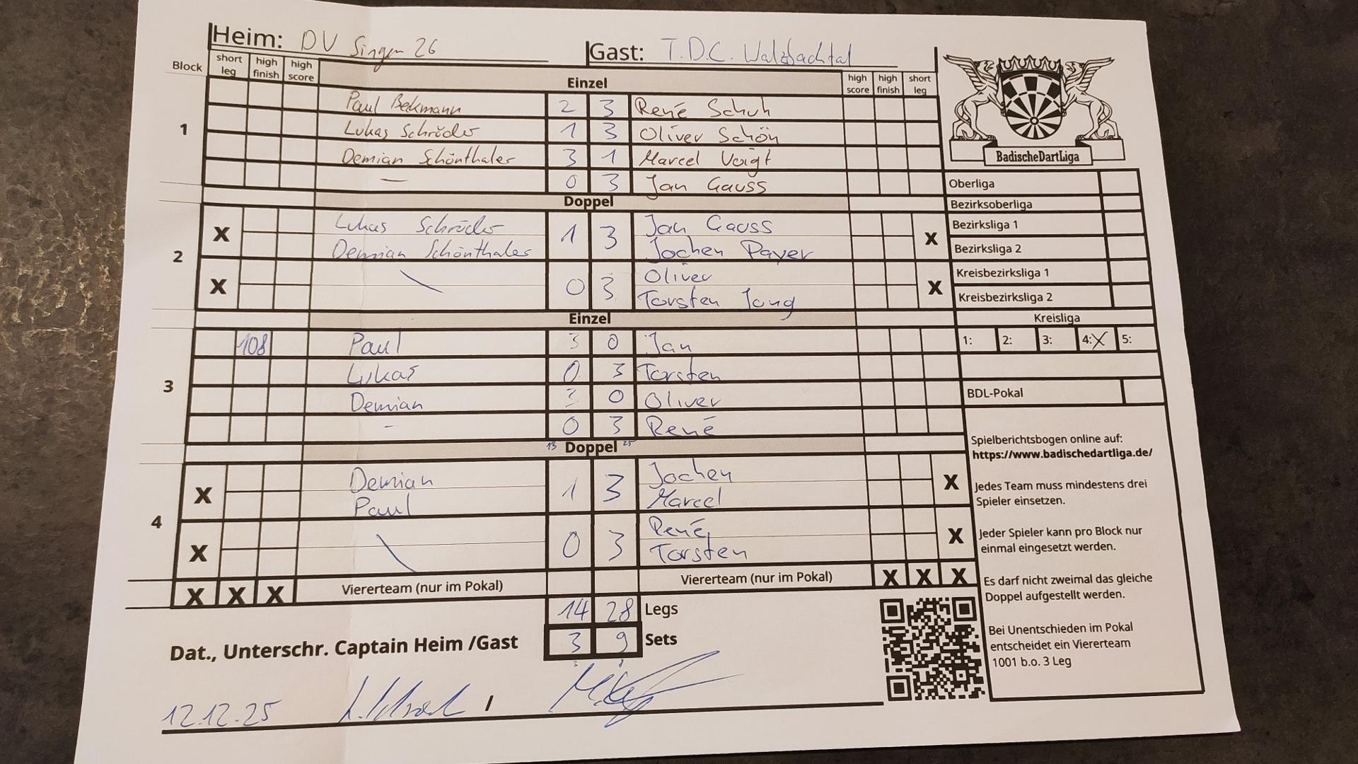 | Ergebnis: | 14 : 28 | - Legs | ||||||