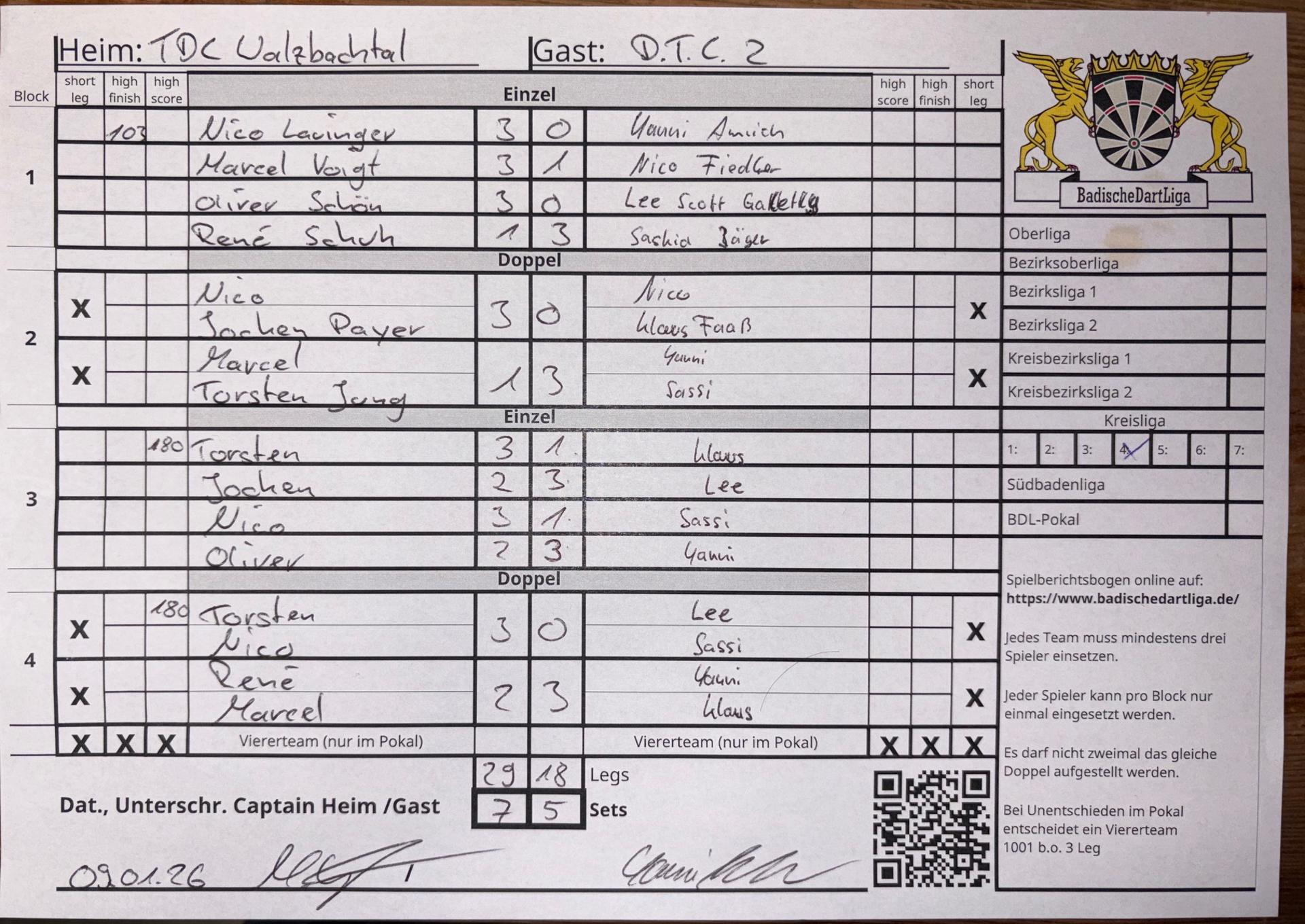 | Ergebnis: | 29 : 18 | - Legs | ||||||