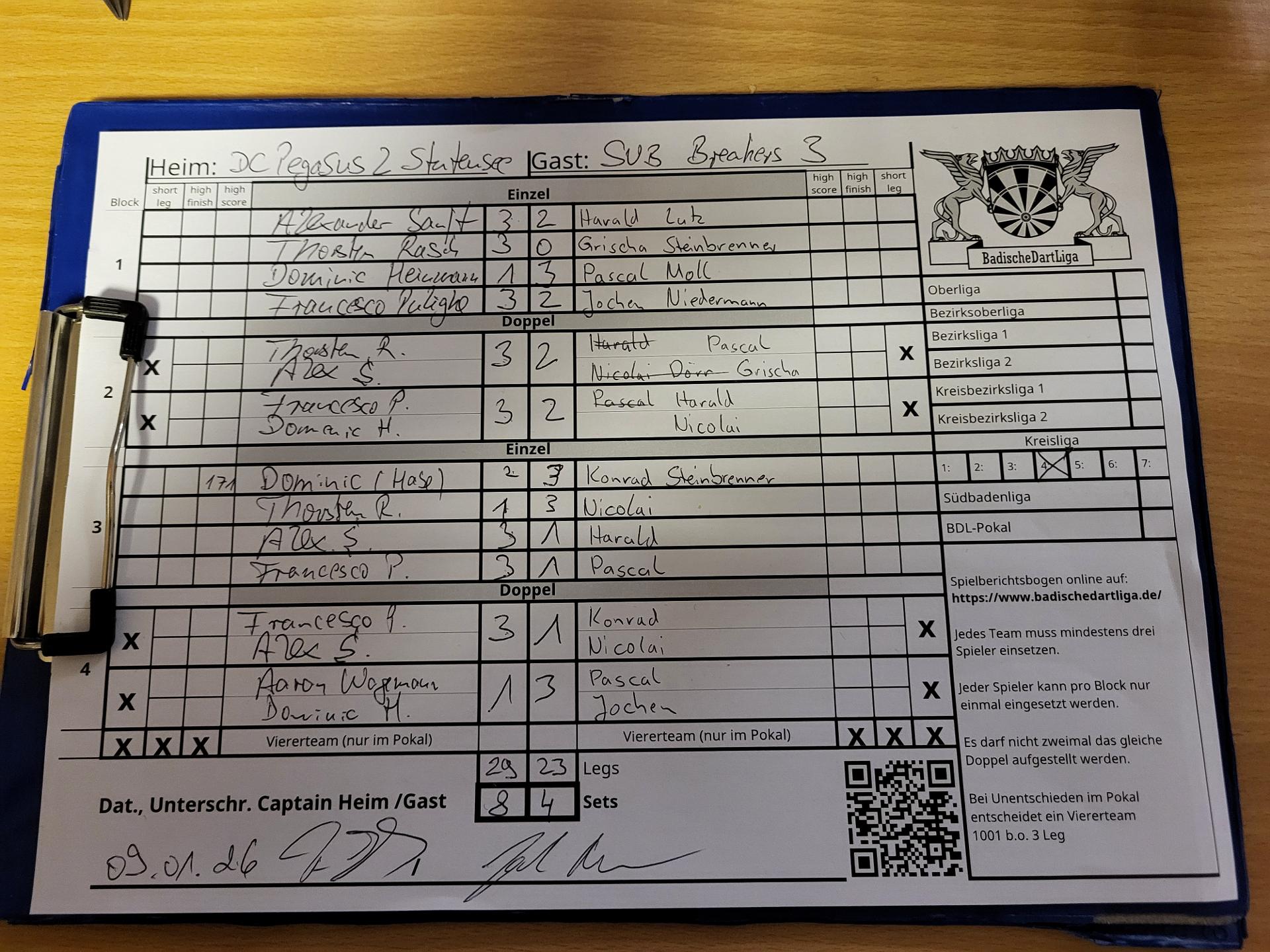 | Ergebnis: | 29 : 23 | - Legs | ||||||