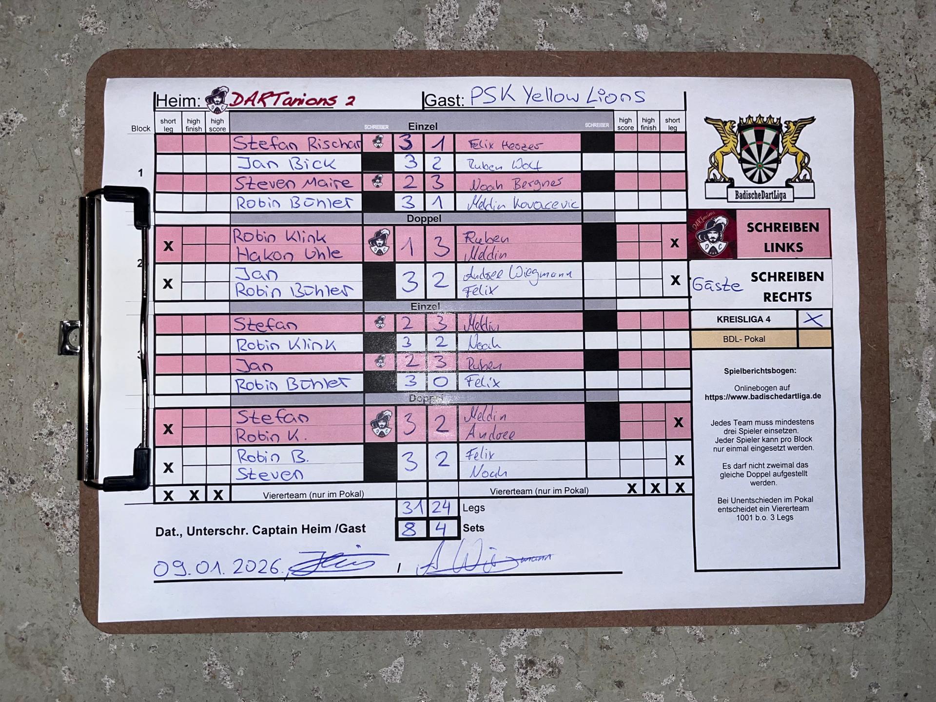 | HEIM: | DC DARTanions 2 | GAST: | PSK Yellow Lions | |||||