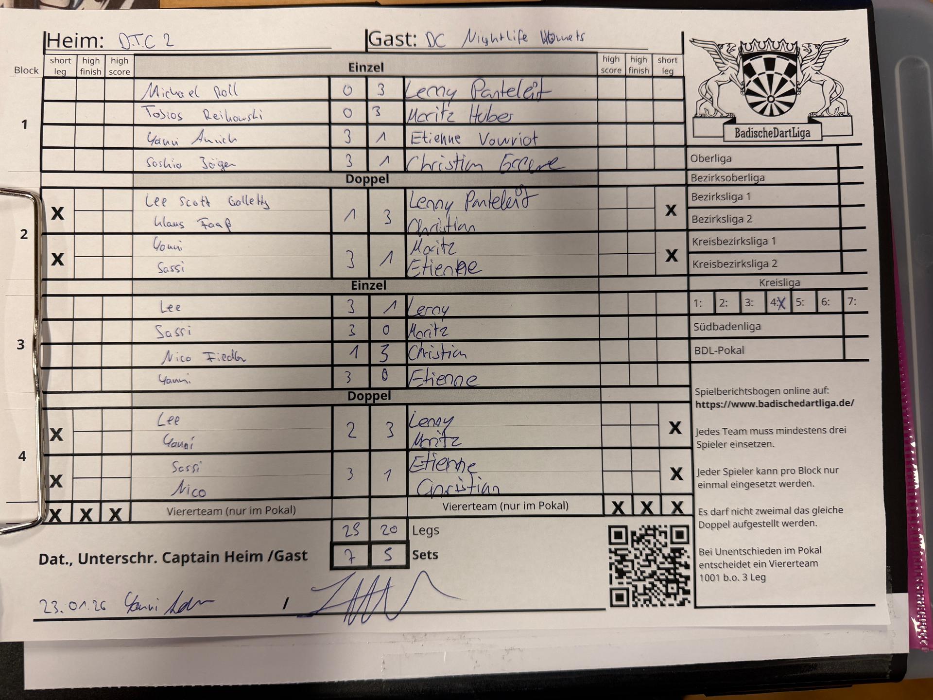 | Ergebnis: | 25 : 20 | - Legs | ||||||