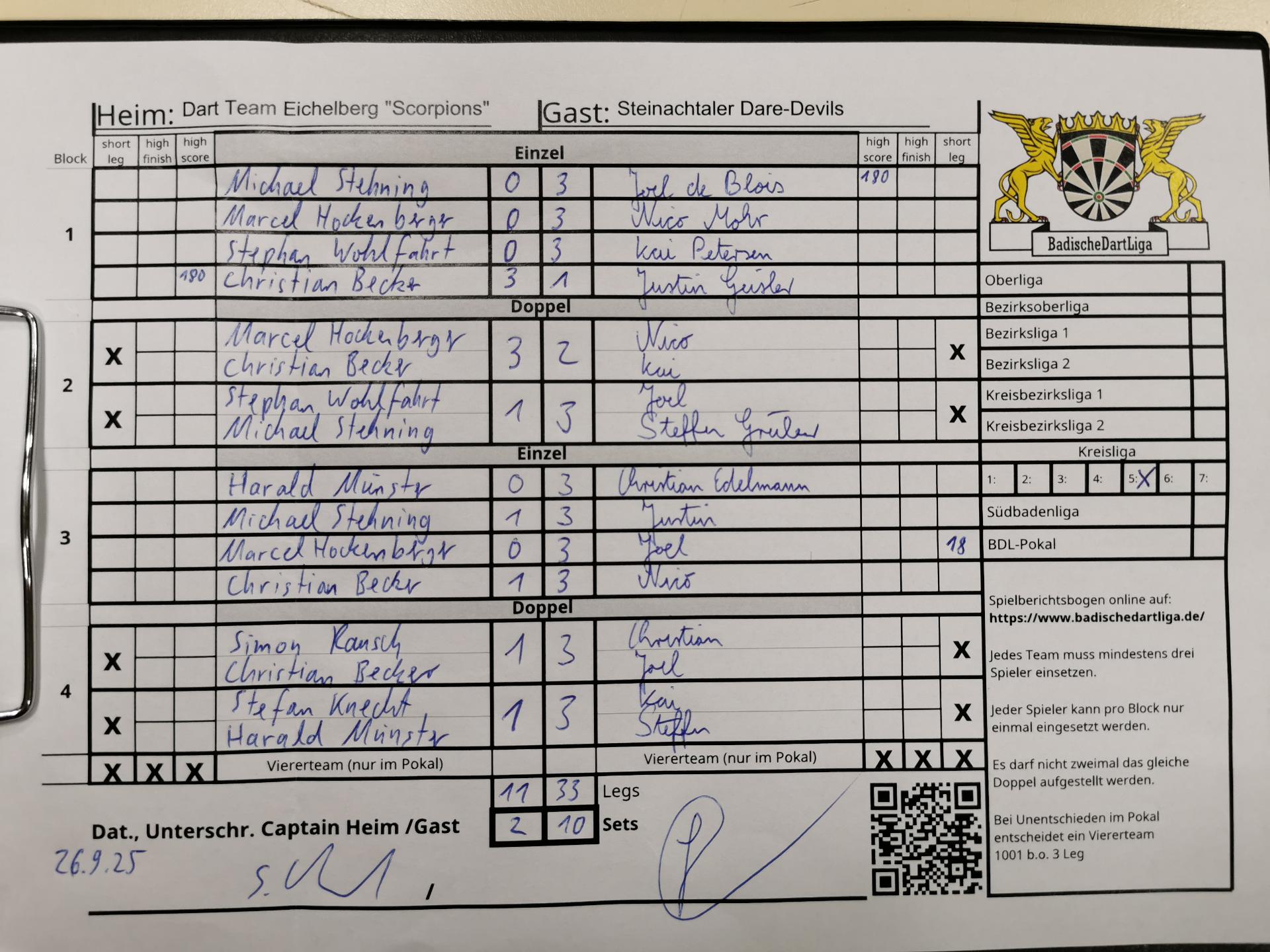 HEIM: | Dart Team Eichelberg "Scorpions" | GAST: | Steinachtaler Dare-Devils | |||||