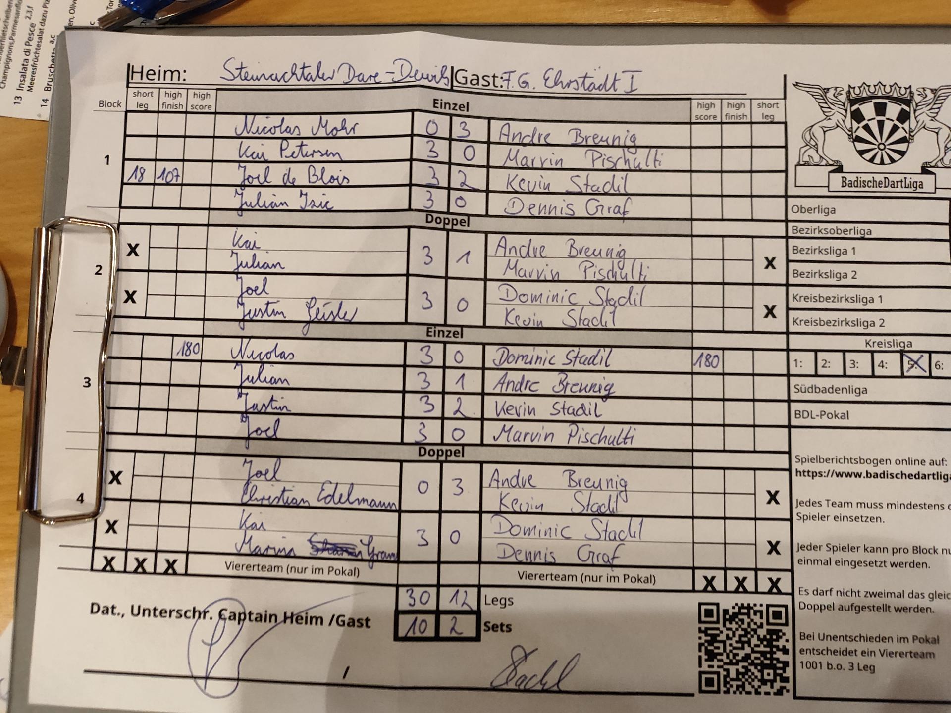 Ergebnis: | 30 : 12 | - Legs | ||||||