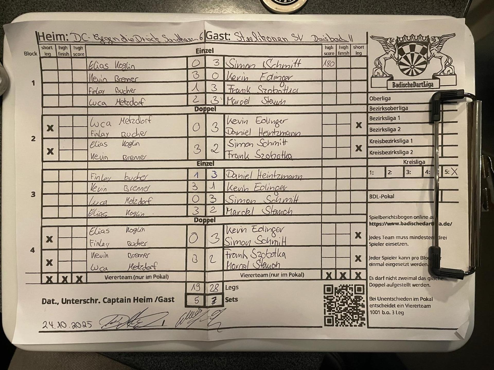 | HEIM: | DC Gegen die Drück Sandhausen 6 | GAST: | Steelikonen SV Daisbach II | |||||