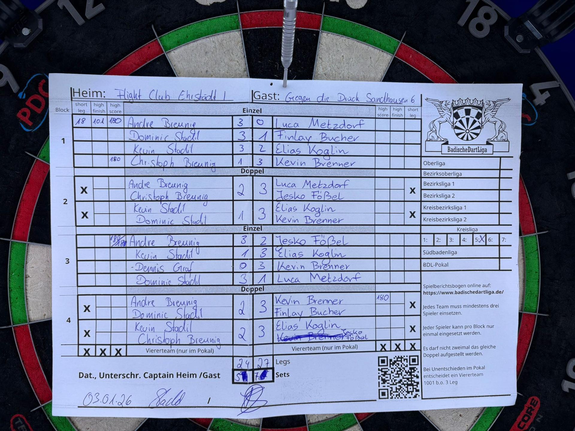 | HEIM: | Flight Club SV Ehrstädt I | GAST: | DC Gegen die Drück Sandhausen 6 | |||||