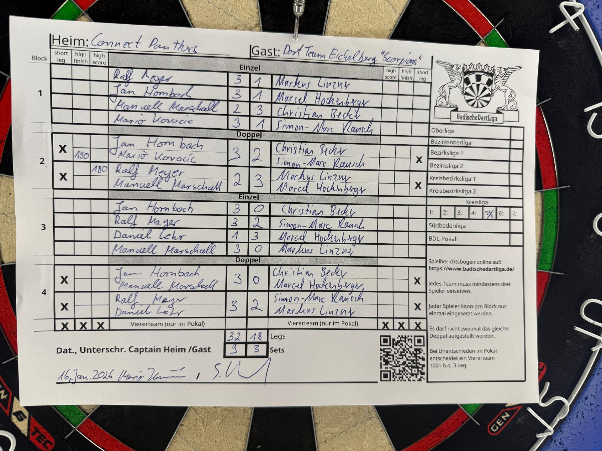 | HEIM: | Connect Panthers | GAST: | Dart Team Eichelberg "Scorpions" | |||||