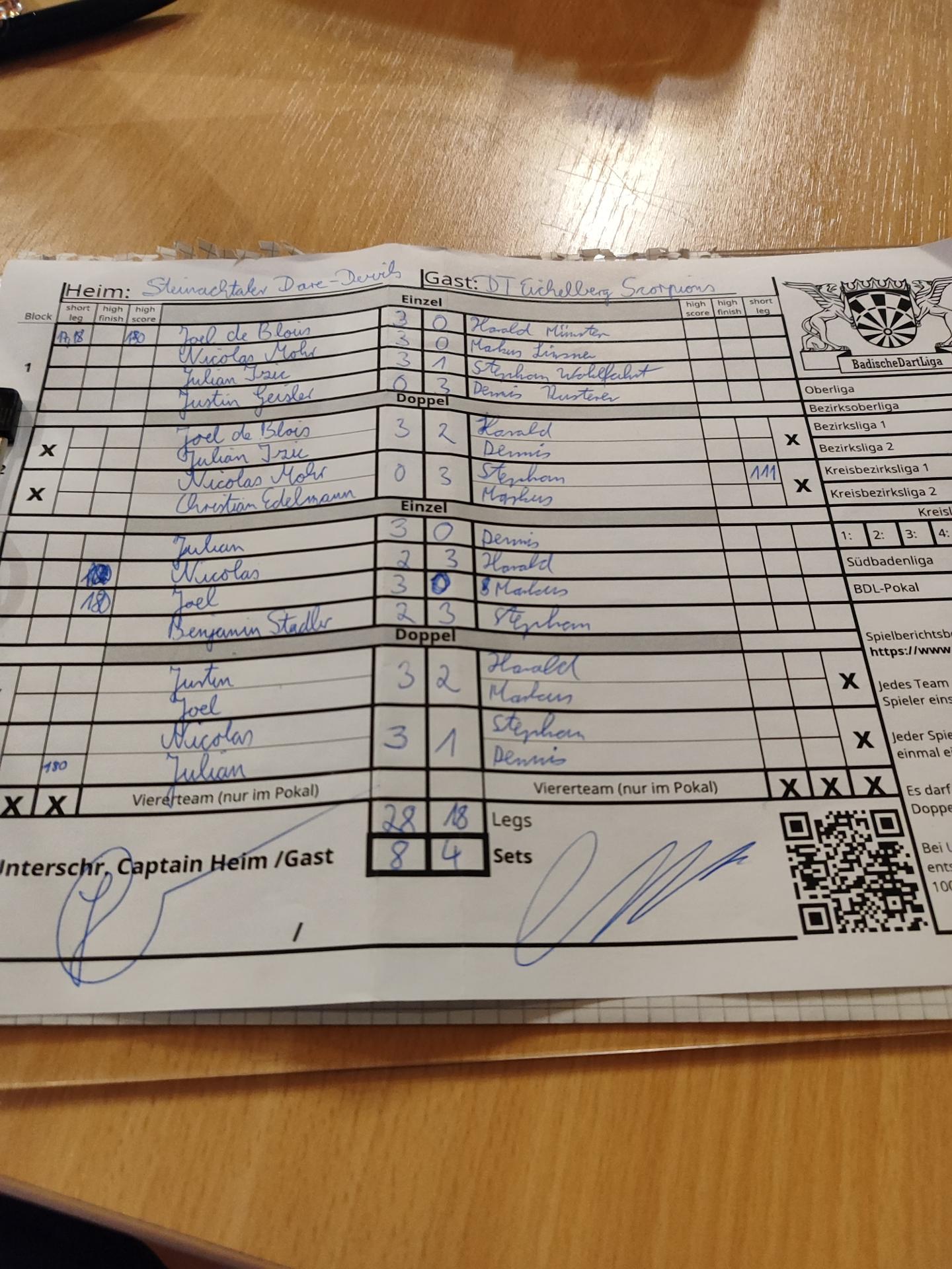 | HEIM: | Steinachtaler Dare-Devils | GAST: | Dart Team Eichelberg "Scorpions" | |||||