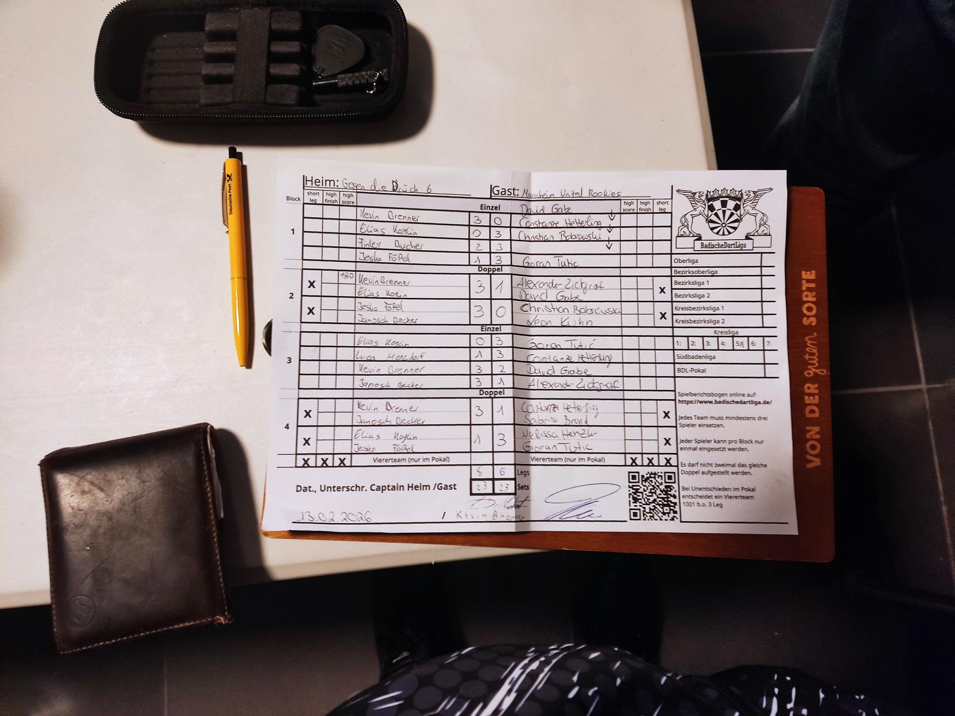 | Ergebnis: | 23 : 23 | - Legs | ||||||