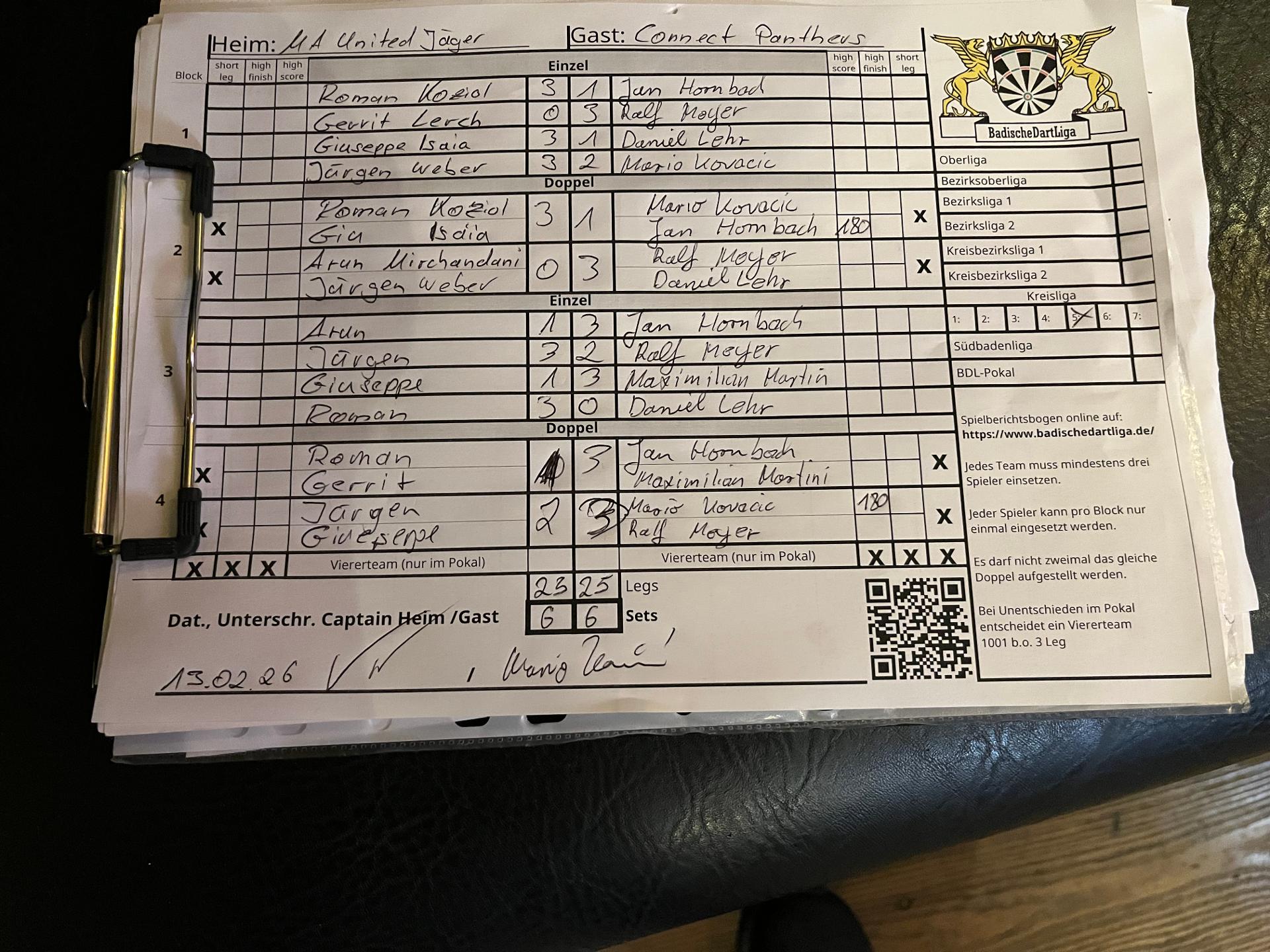 | Ergebnis: | 23 : 25 | - Legs | ||||||
