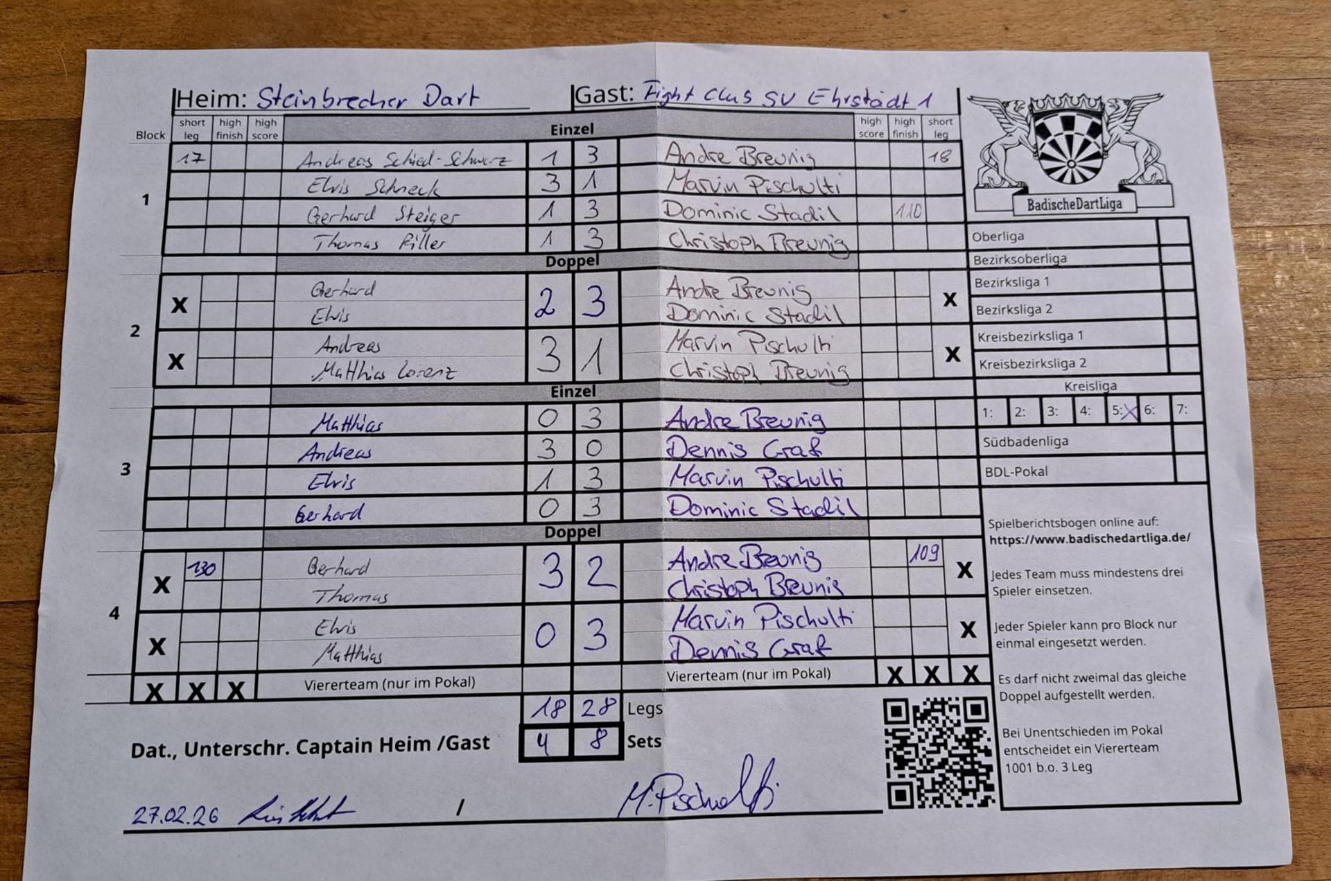 | Ergebnis: | 18 : 28 | - Legs | ||||||