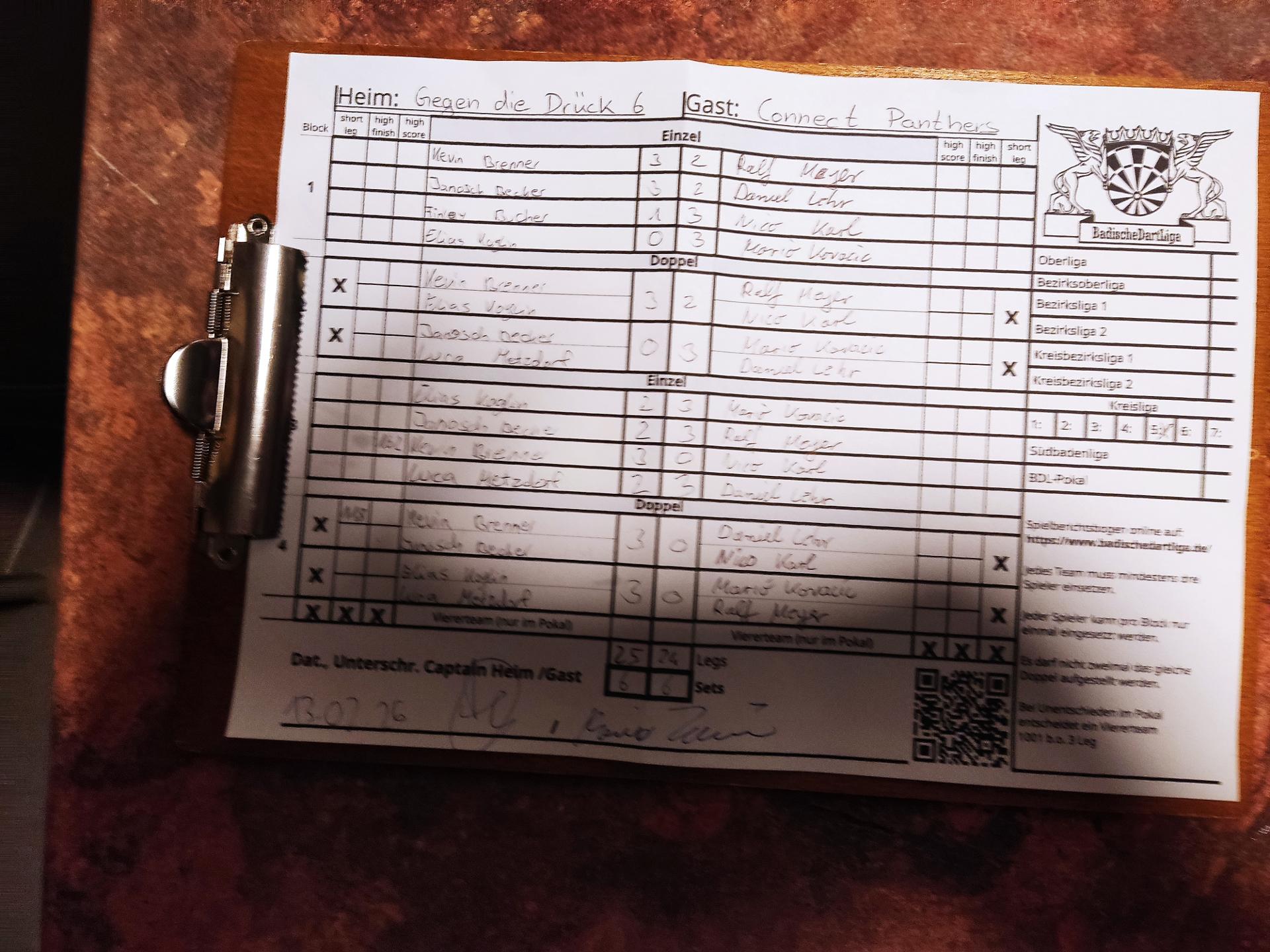 | Ergebnis: | 25 : 24 | - Legs | ||||||