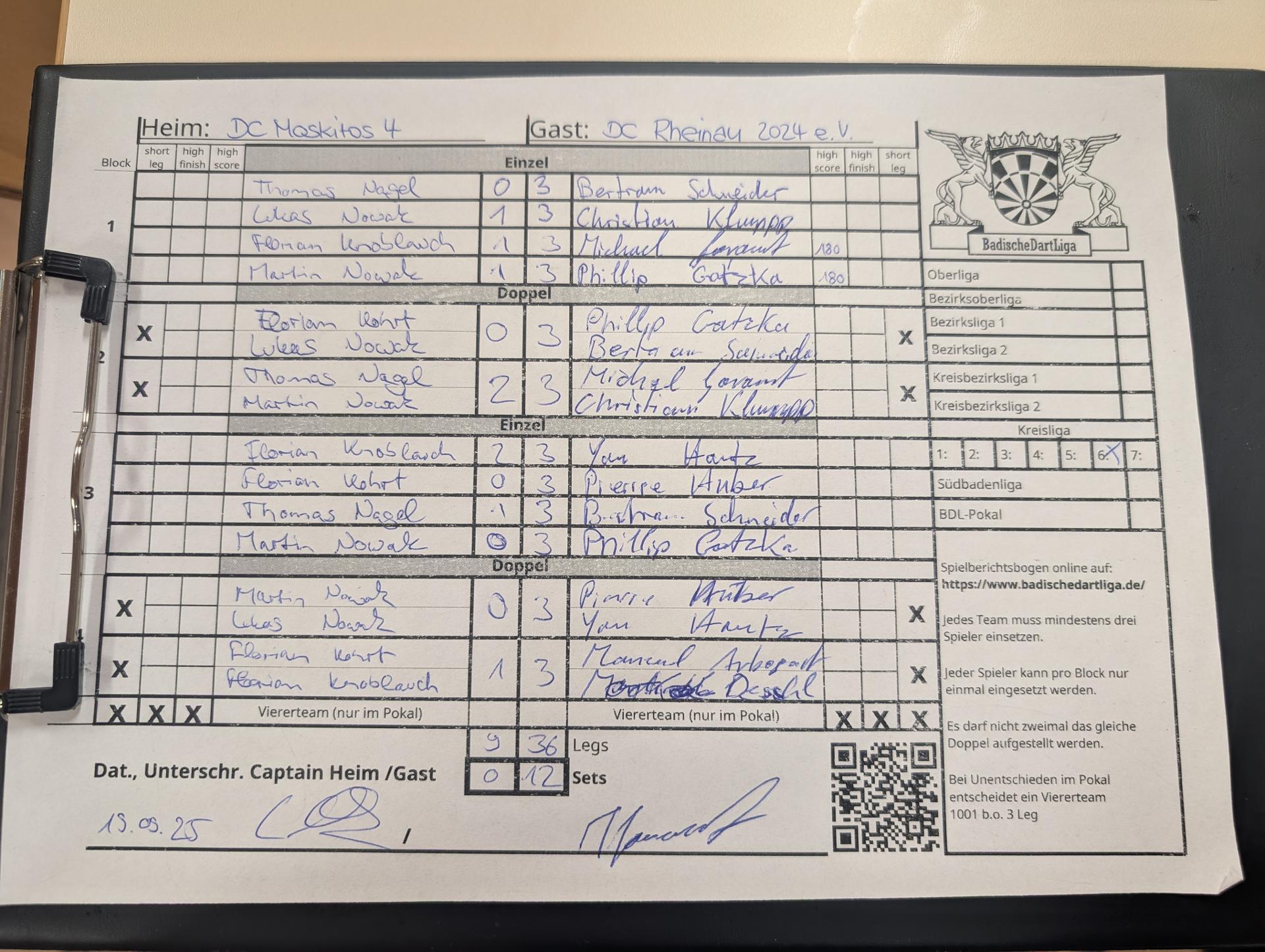 HEIM: | DC Moskitos 4 | GAST: | Dart Club Rheinau 2024 e.V. | |||||