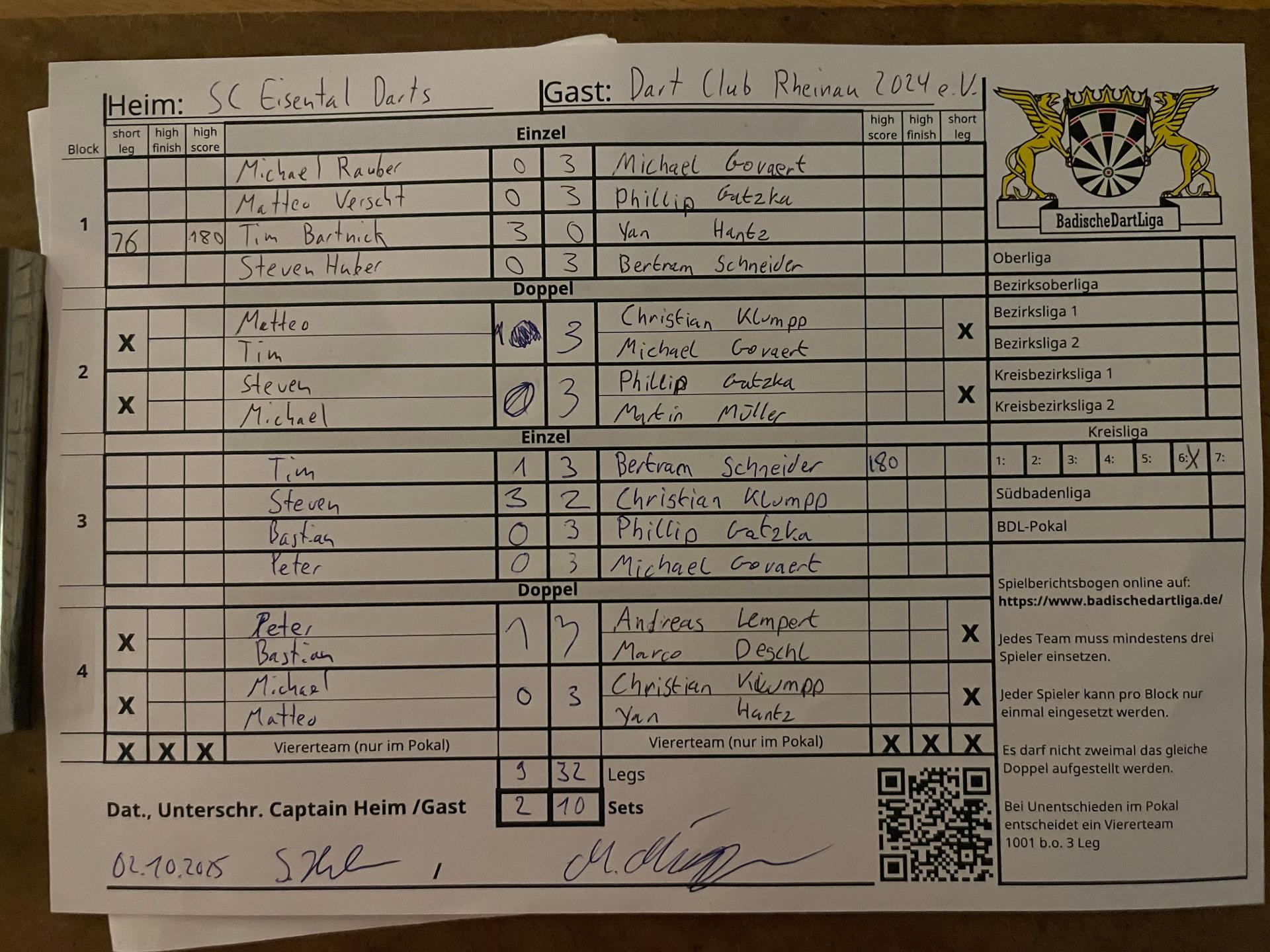 HEIM: | SC Eisental Darts | GAST: | Dart Club Rheinau 2024 e.V. | |||||