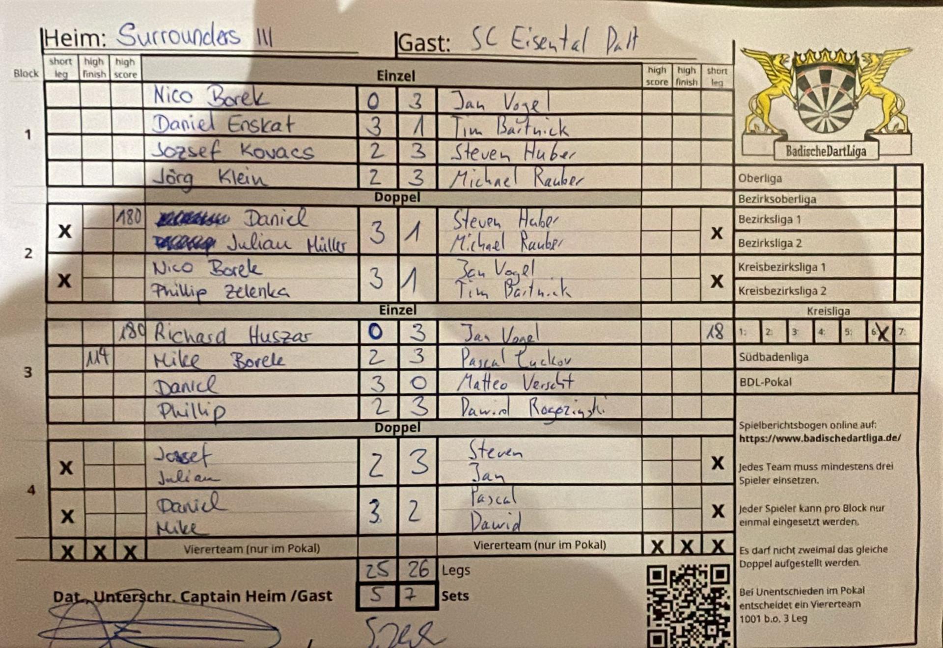 | HEIM: | Rastatter SC/DJK Surrounders 3 | GAST: | SC Eisental Darts | |||||
