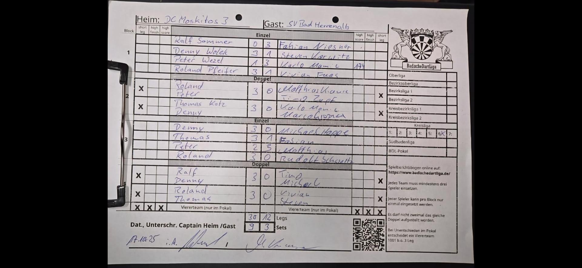 | Ergebnis: | 30 : 12 | - Legs | ||||||