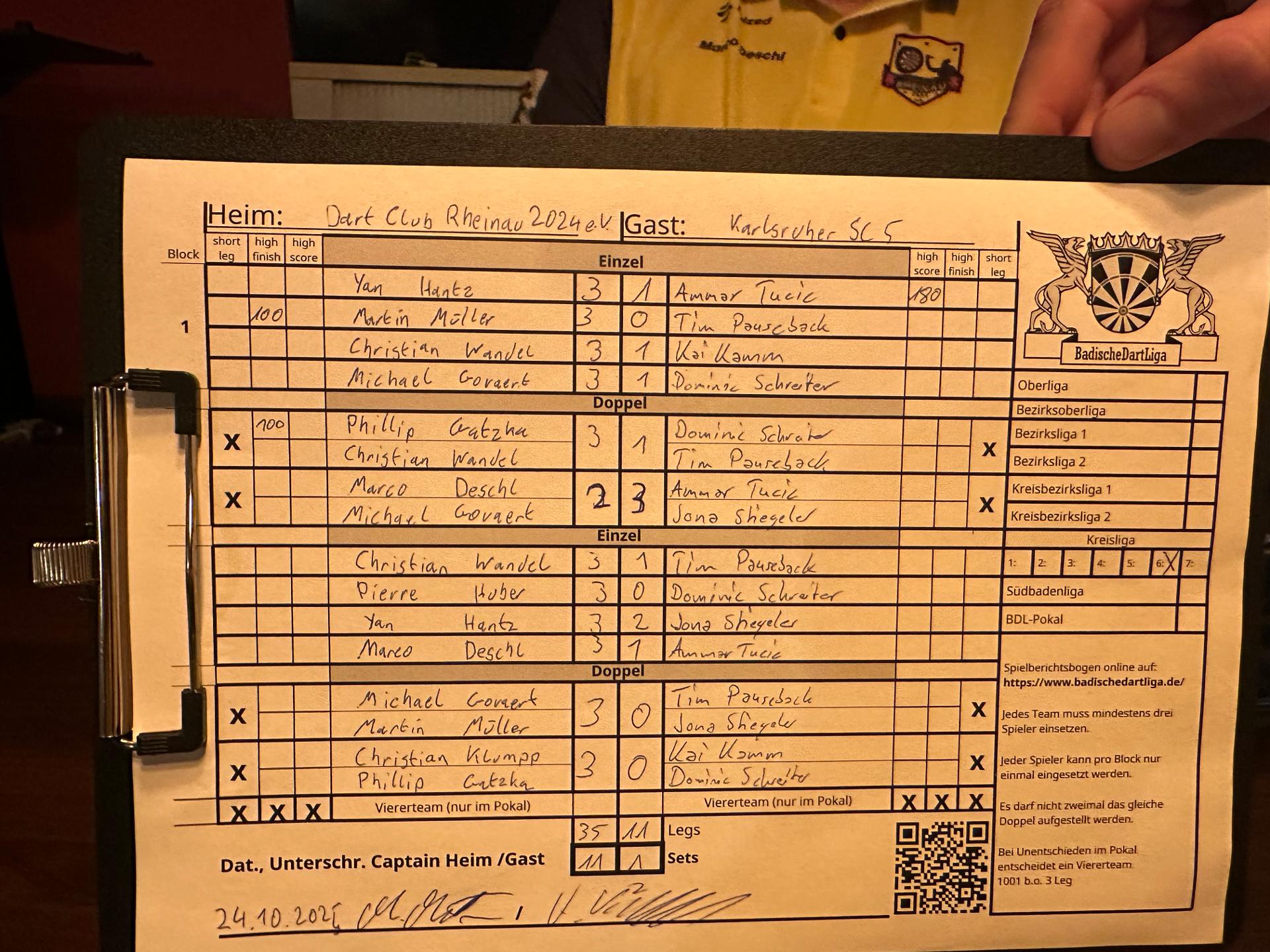 | HEIM: | Dart Club Rheinau 2024 e.V. | GAST: | Karlsruher SC 5 | |||||