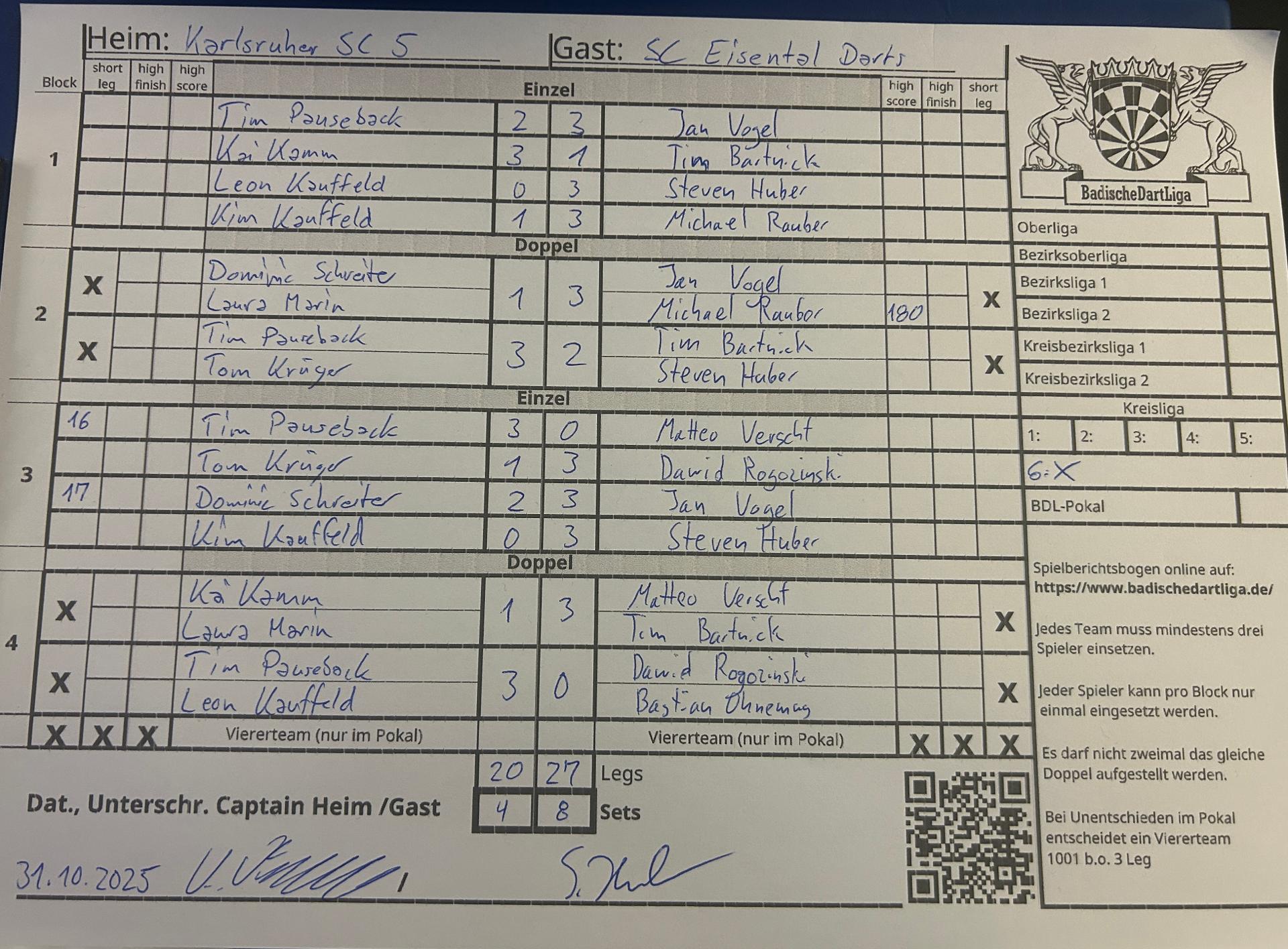| HEIM: | Karlsruher SC 5 | GAST: | SC Eisental Darts | |||||