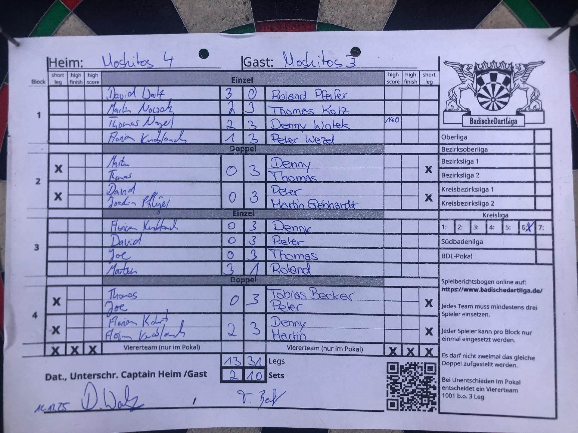 | Ergebnis: | 13 : 31 | - Legs | ||||||