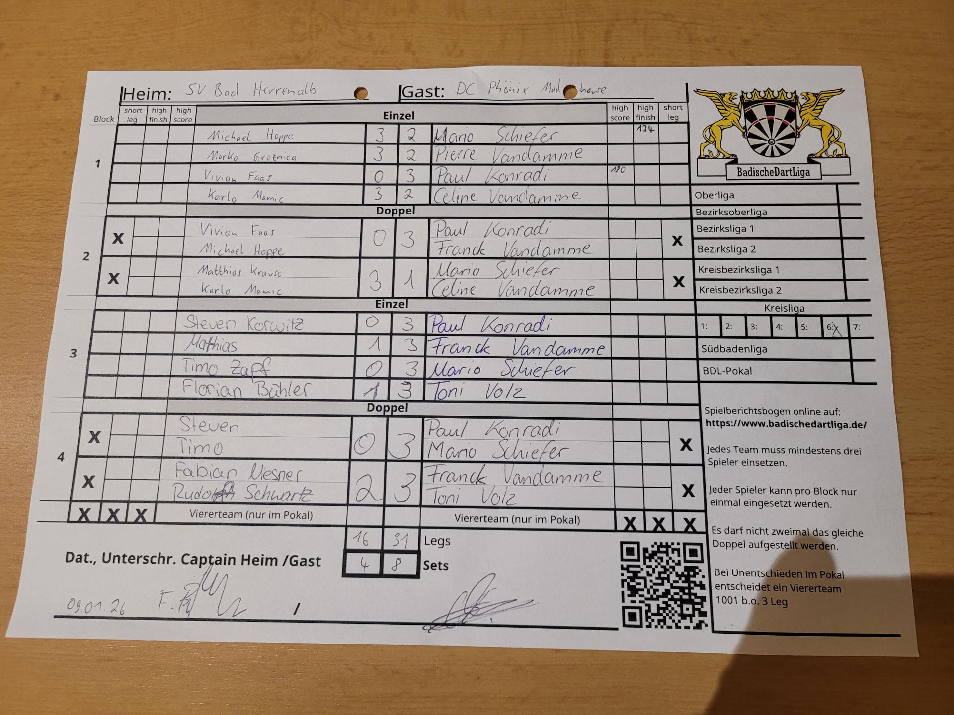 | Ergebnis: | 16 : 31 | - Legs | ||||||