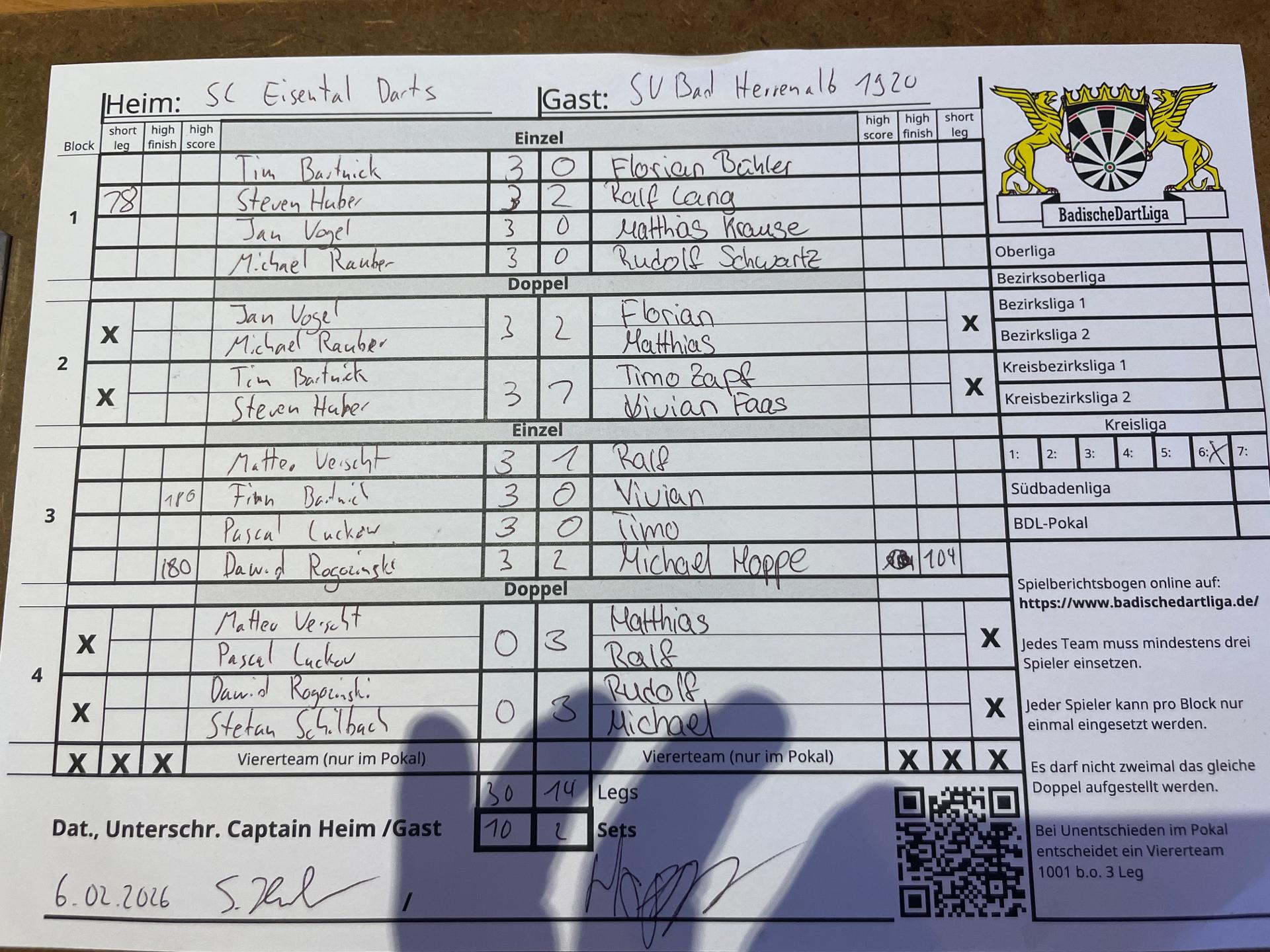 | HEIM: | SC Eisental Darts | GAST: | SV Bad Herrenalb 1920 | |||||