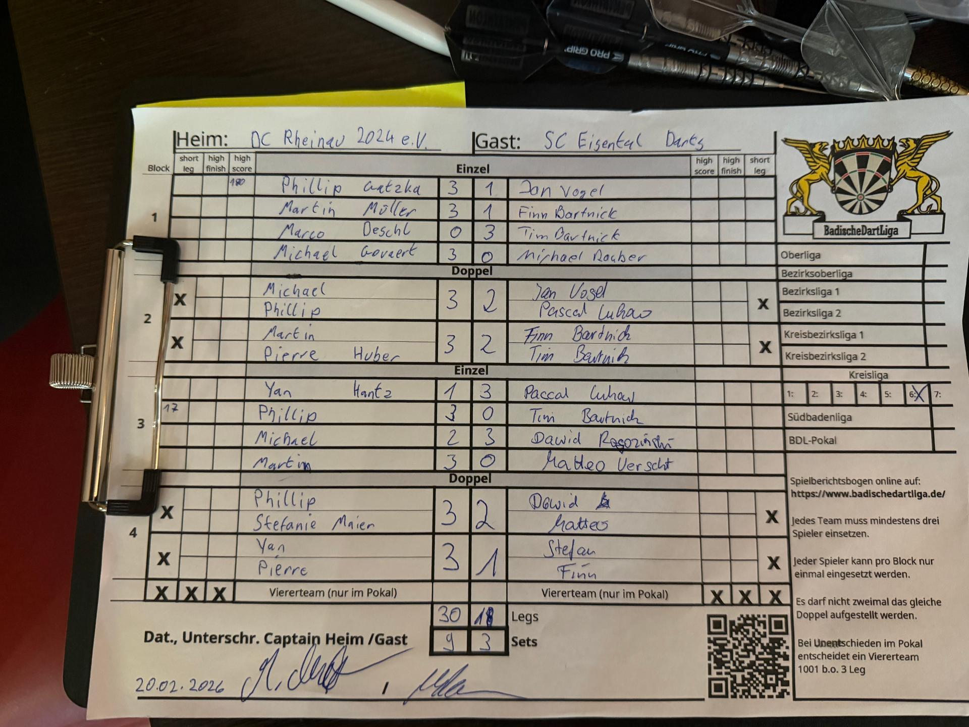 | HEIM: | Dart Club Rheinau 2024 e.V. | GAST: | SC Eisental Darts | |||||