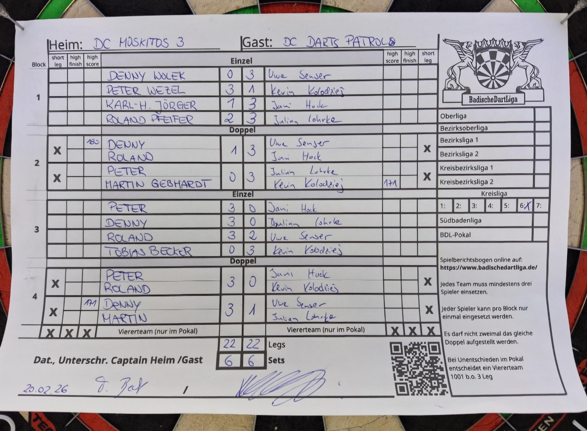 | Ergebnis: | 22 : 22 | - Legs | ||||||