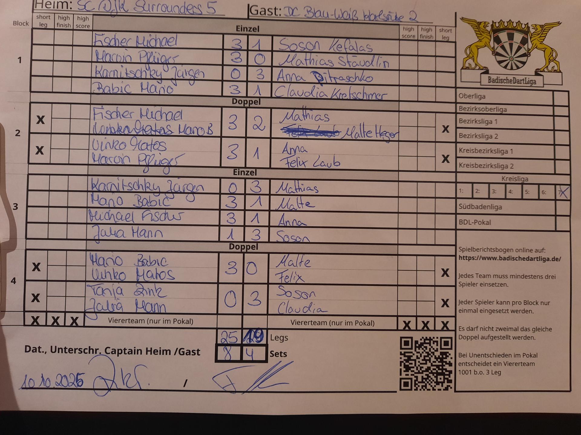 HEIM: | Rastatter SC/DJK Surrounders 5 | GAST: | DC Blau-Weiß Karlsruhe 2 | |||||