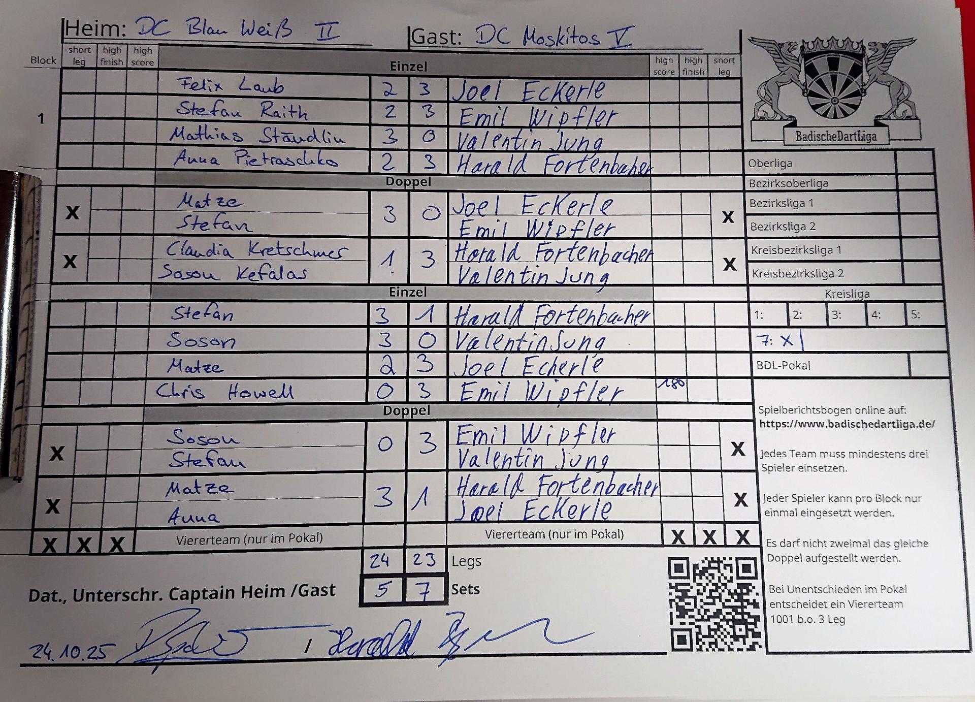 | Ergebnis: | 24 : 23 | - Legs | ||||||