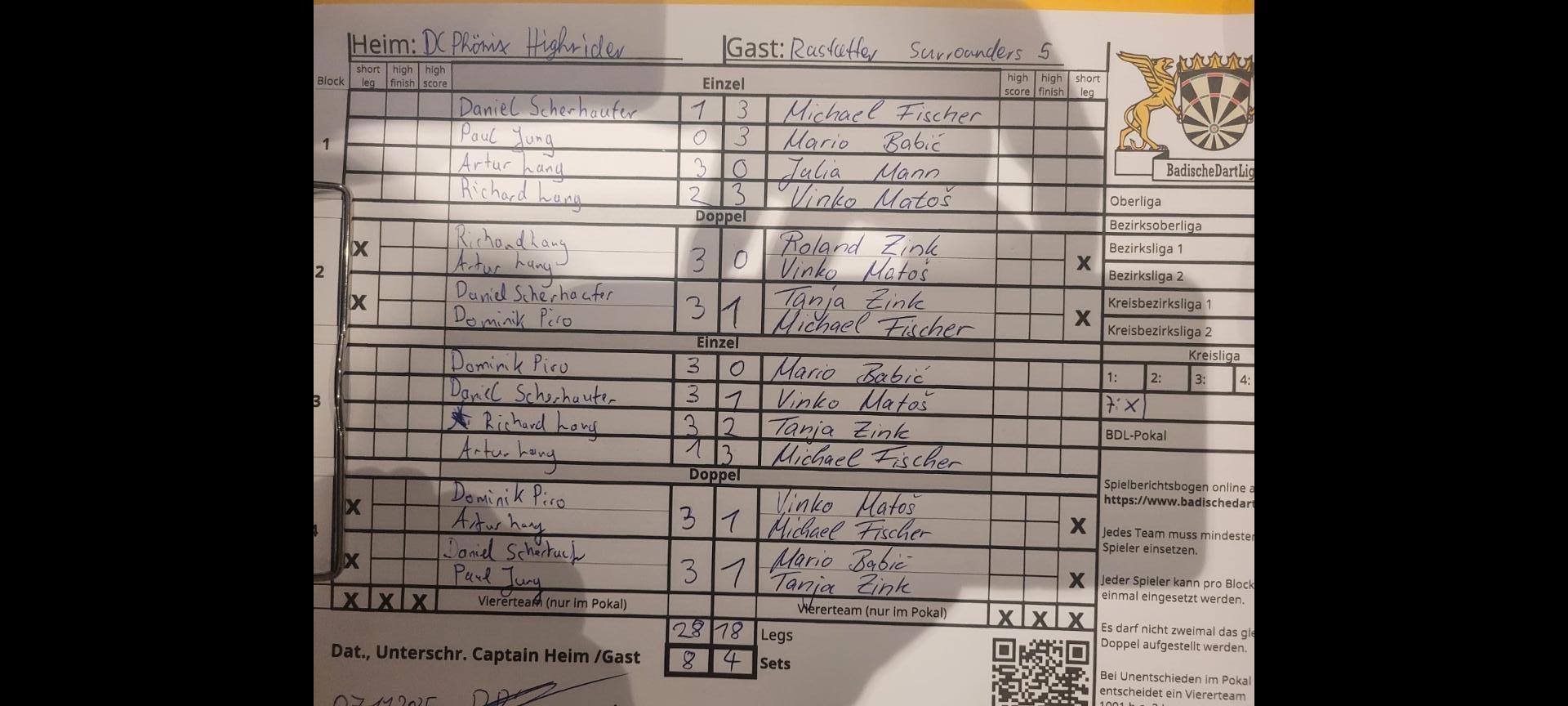 | Ergebnis: | 28 : 18 | - Legs | ||||||