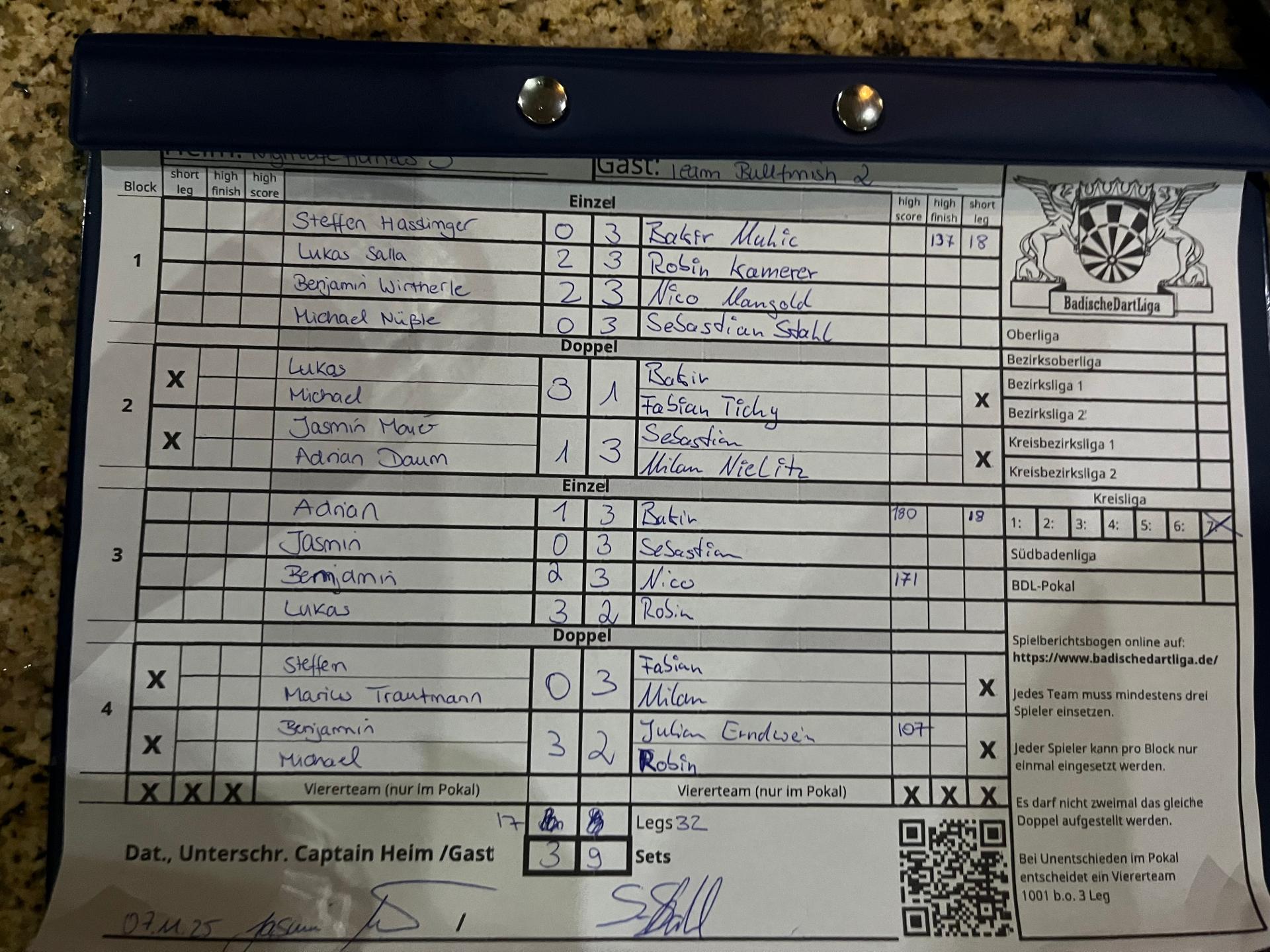 | Ergebnis: | 17 : 32 | - Legs | ||||||