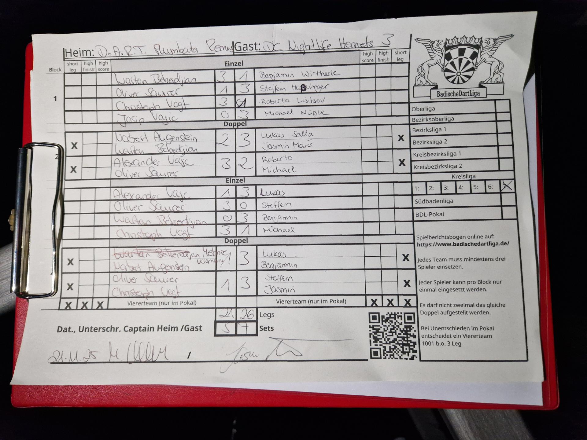 | Ergebnis: | 21 : 26 | - Legs | ||||||