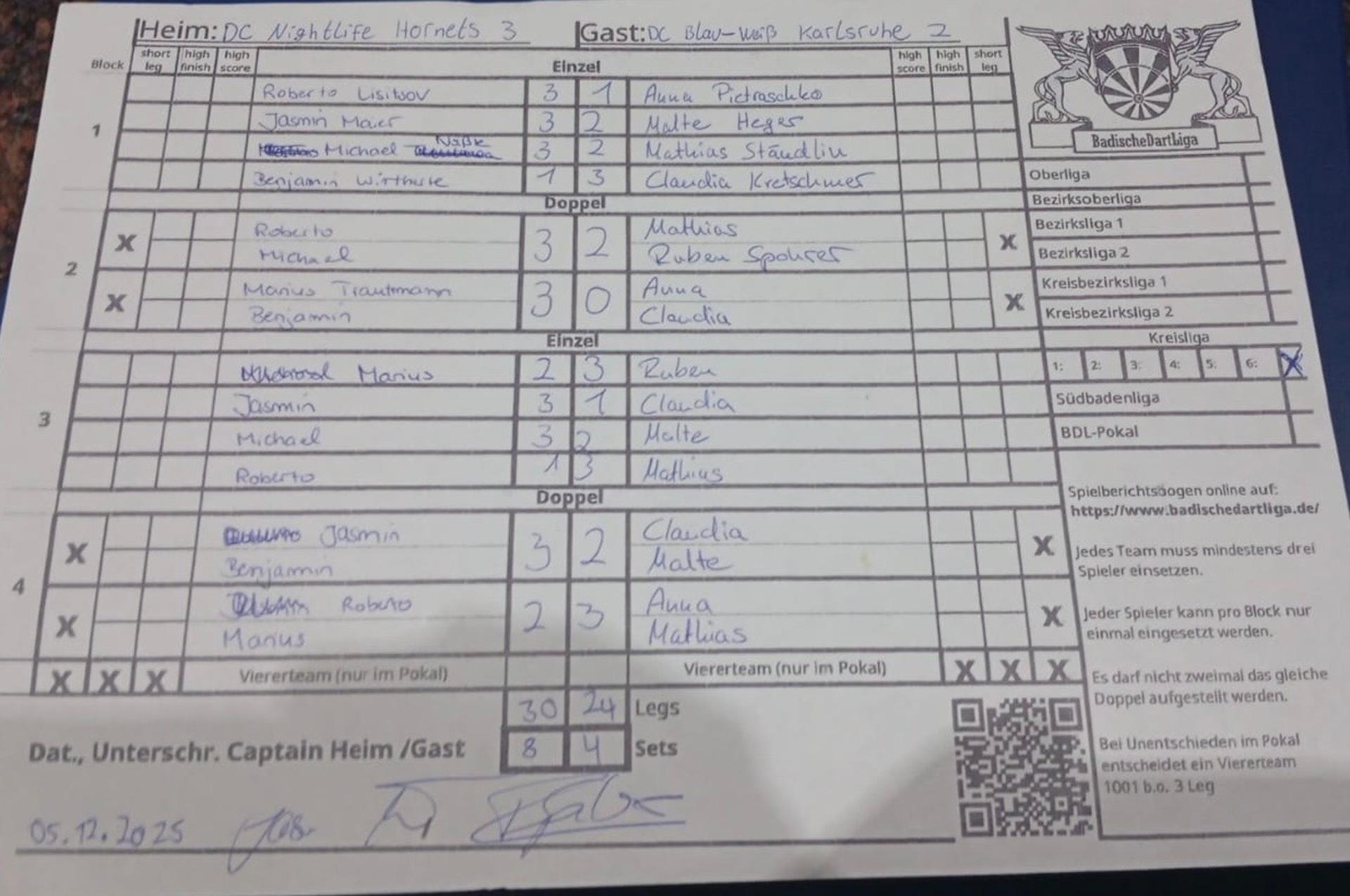 | HEIM: | DC Nightlife Hornets 3 | GAST: | DC Blau-Weiß Karlsruhe 2 | |||||