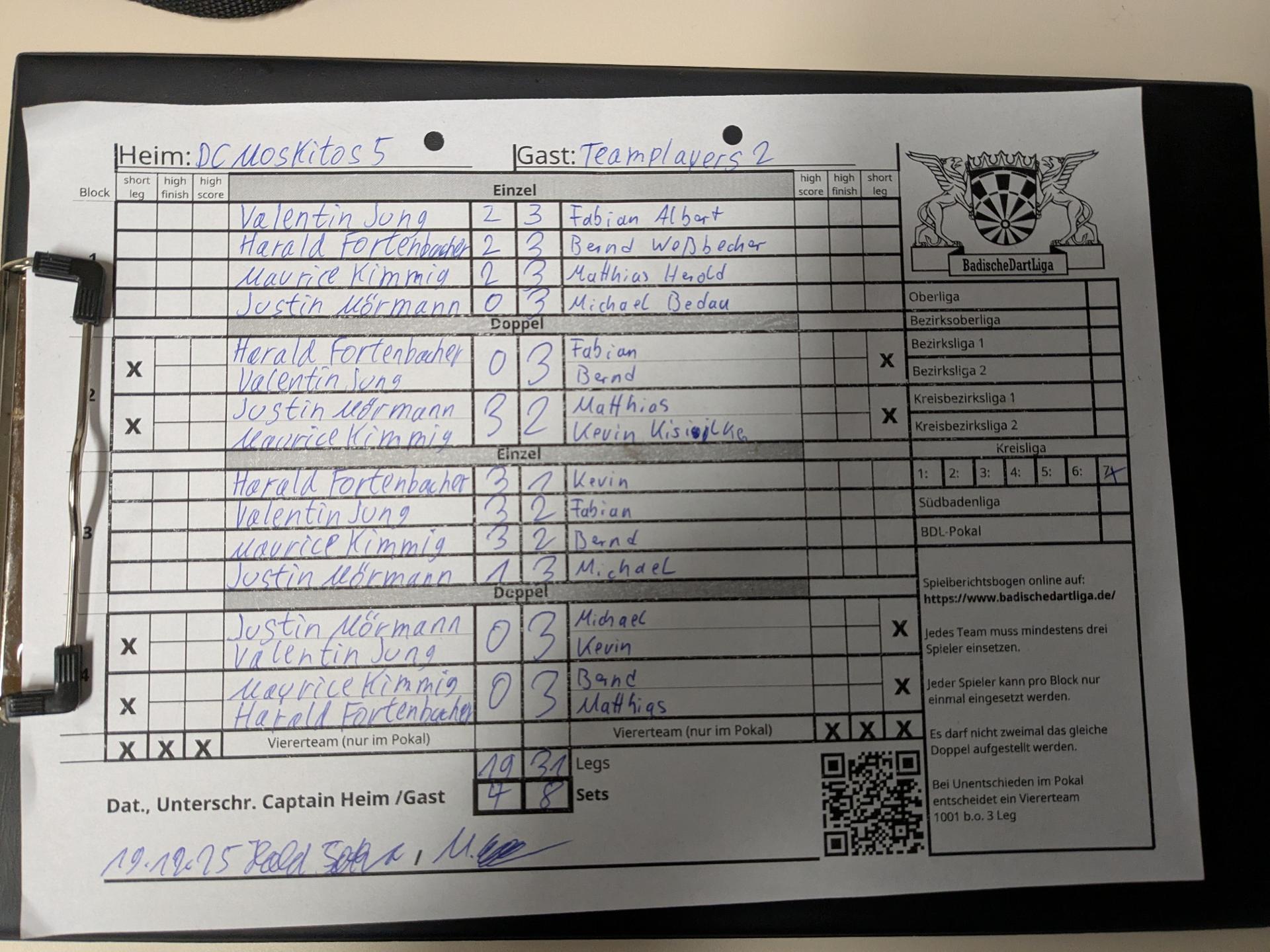 | Ergebnis: | 19 : 31 | - Legs | ||||||