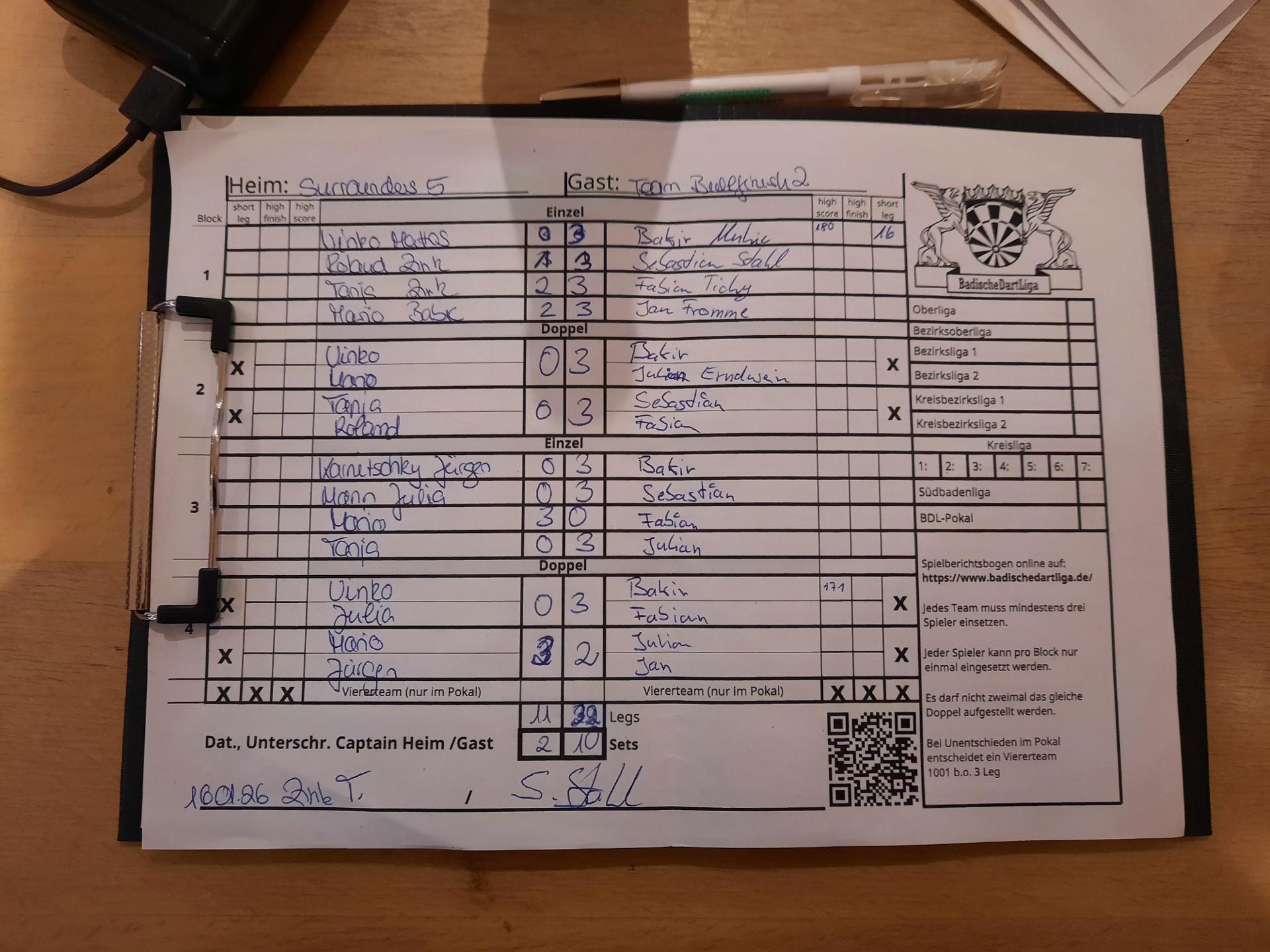 | Ergebnis: | 11 : 32 | - Legs | ||||||