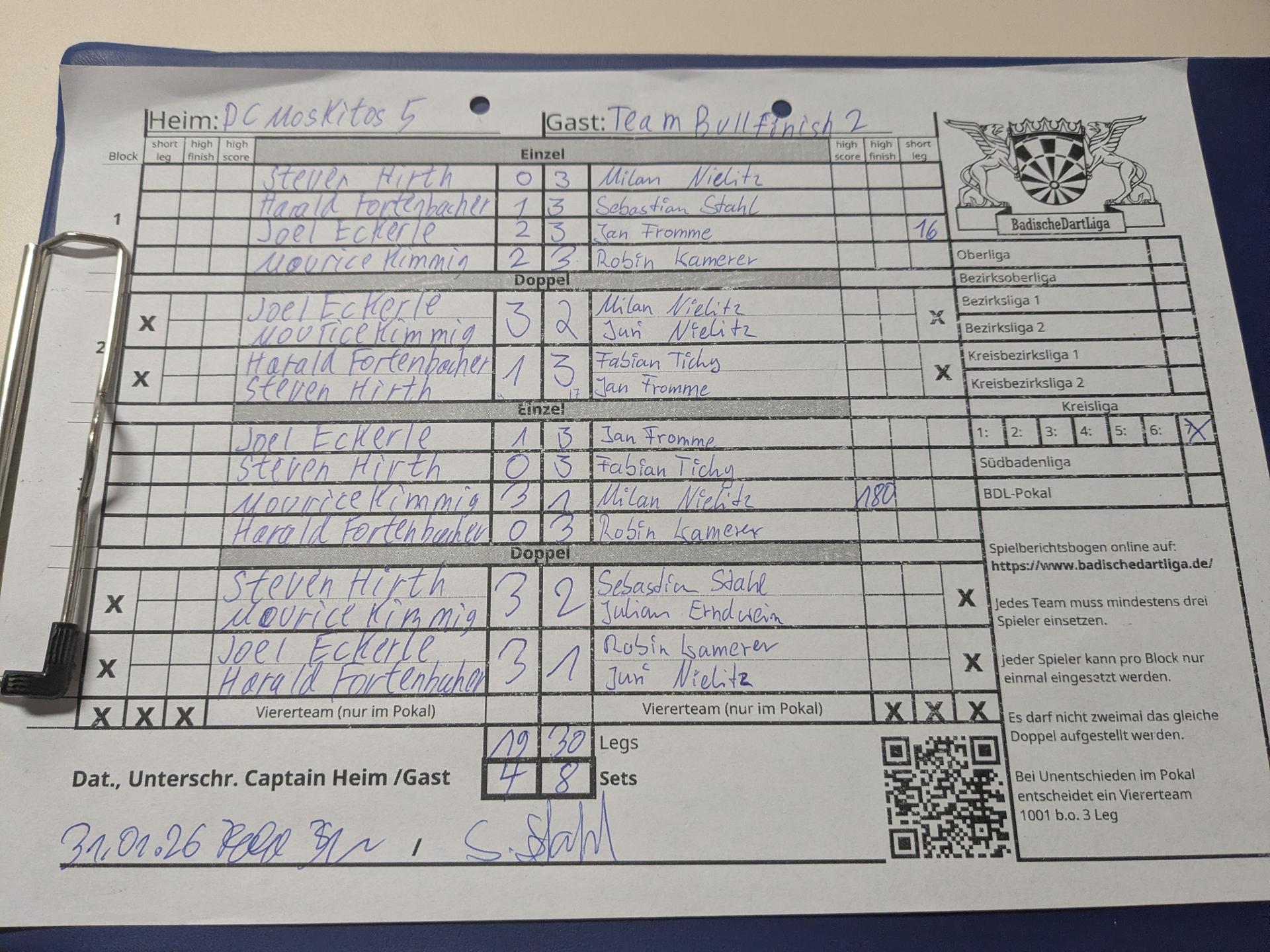 | Ergebnis: | 19 : 30 | - Legs | ||||||
