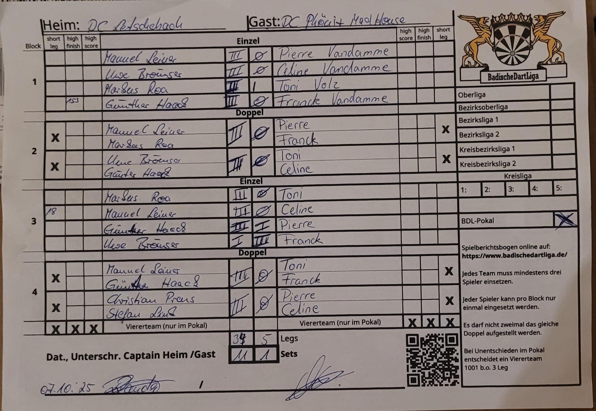 Ergebnis: | 34 : 5 | - Legs | ||||||