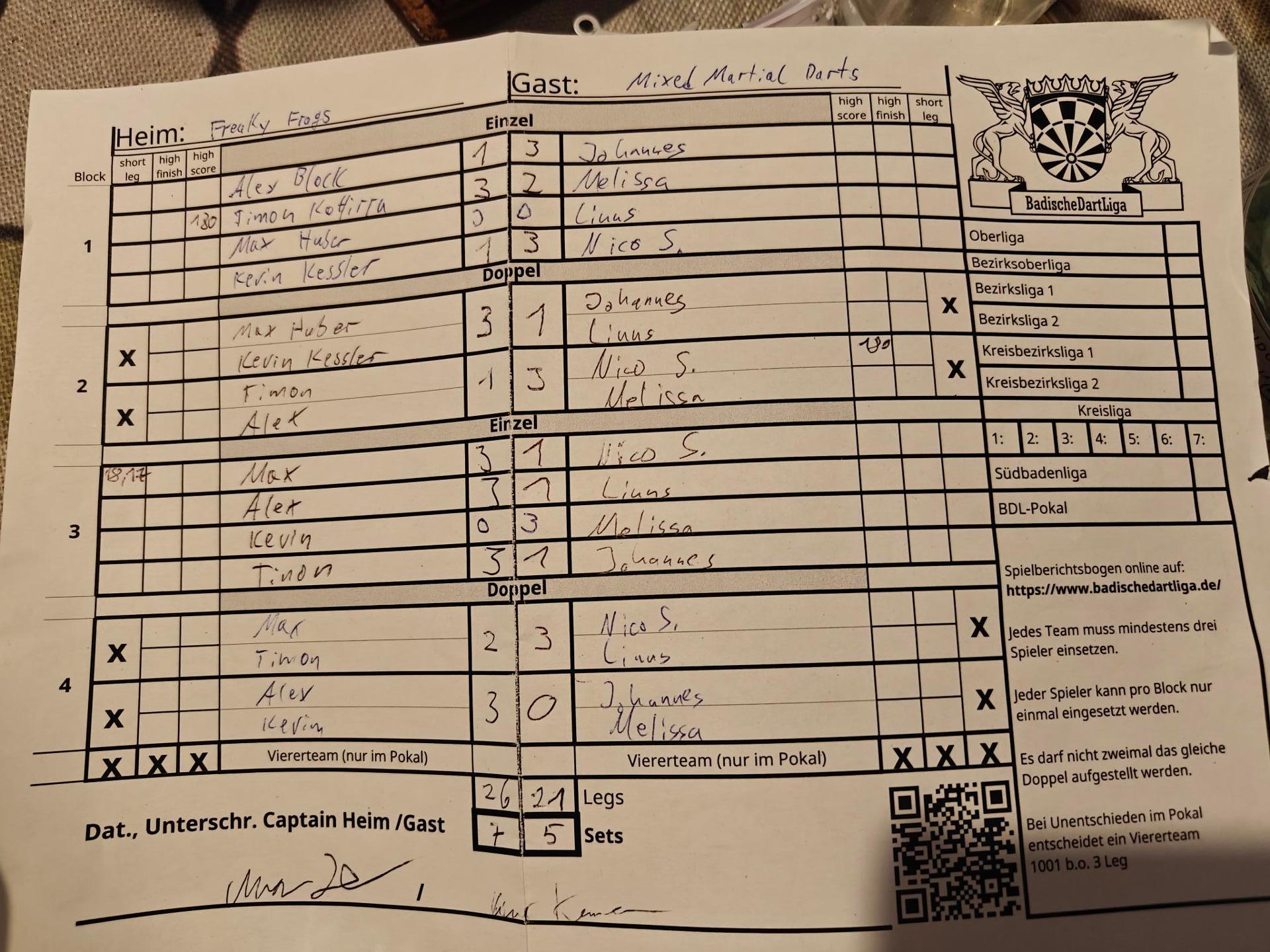 | HEIM: | Freaky Frogs | GAST: | ESV Freiburg Team 5 Mixed Martial Darts | |||||
