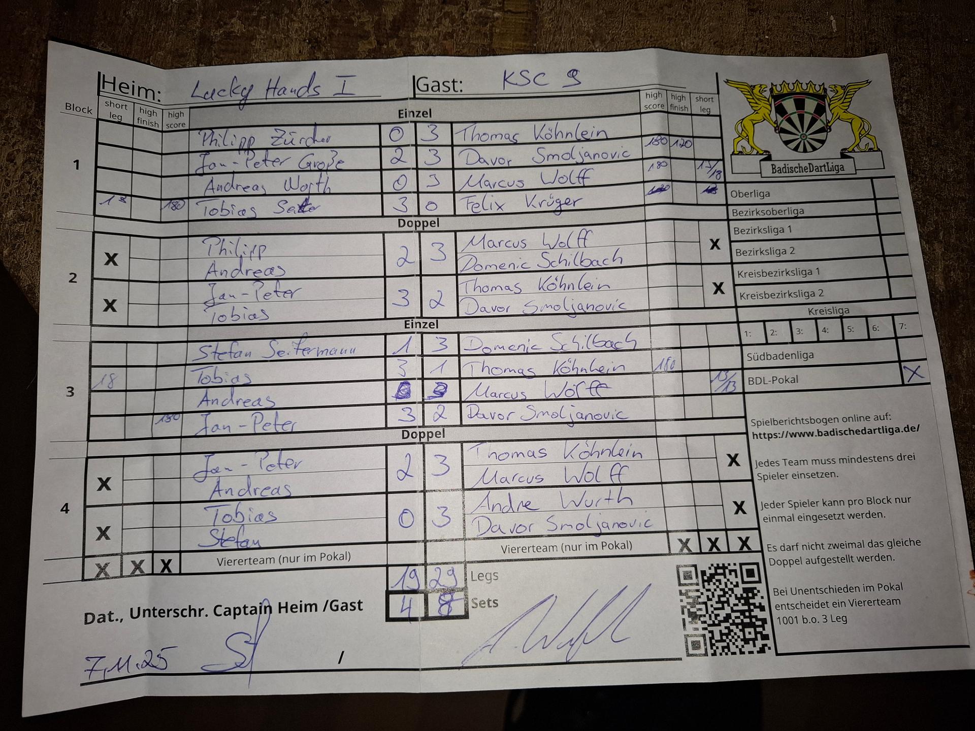 | Ergebnis: | 19 : 29 | - Legs | ||||||