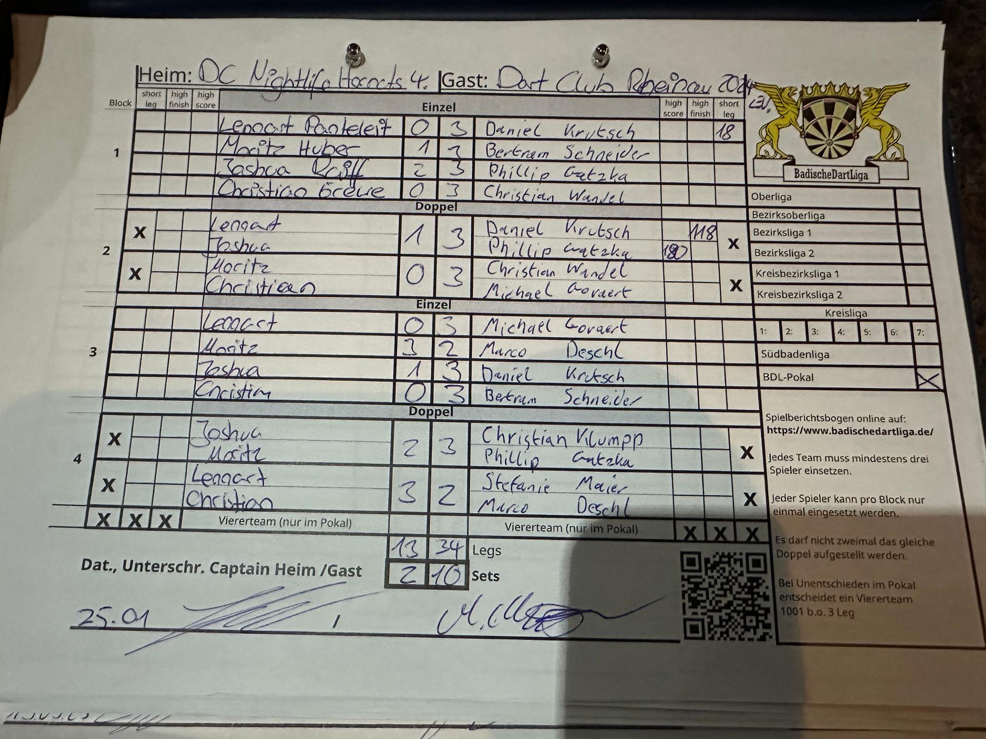| HEIM: | DC Nightlife Hornets 4 | GAST: | Dart Club Rheinau 2024 e.V. | |||||