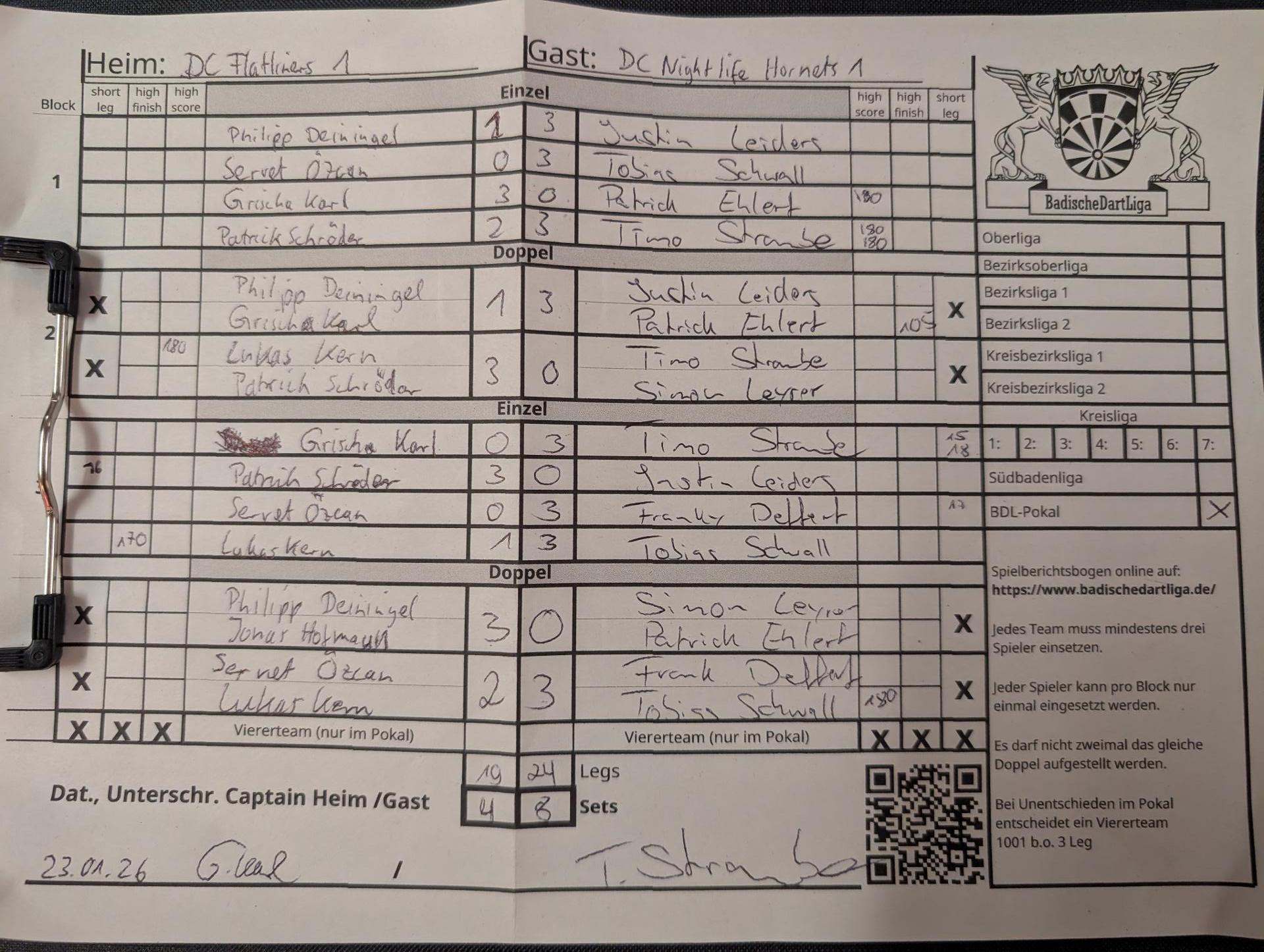 | HEIM: | DC Flatliners Karlsruhe 1 | GAST: | DC Nightlife Hornets 1 | |||||