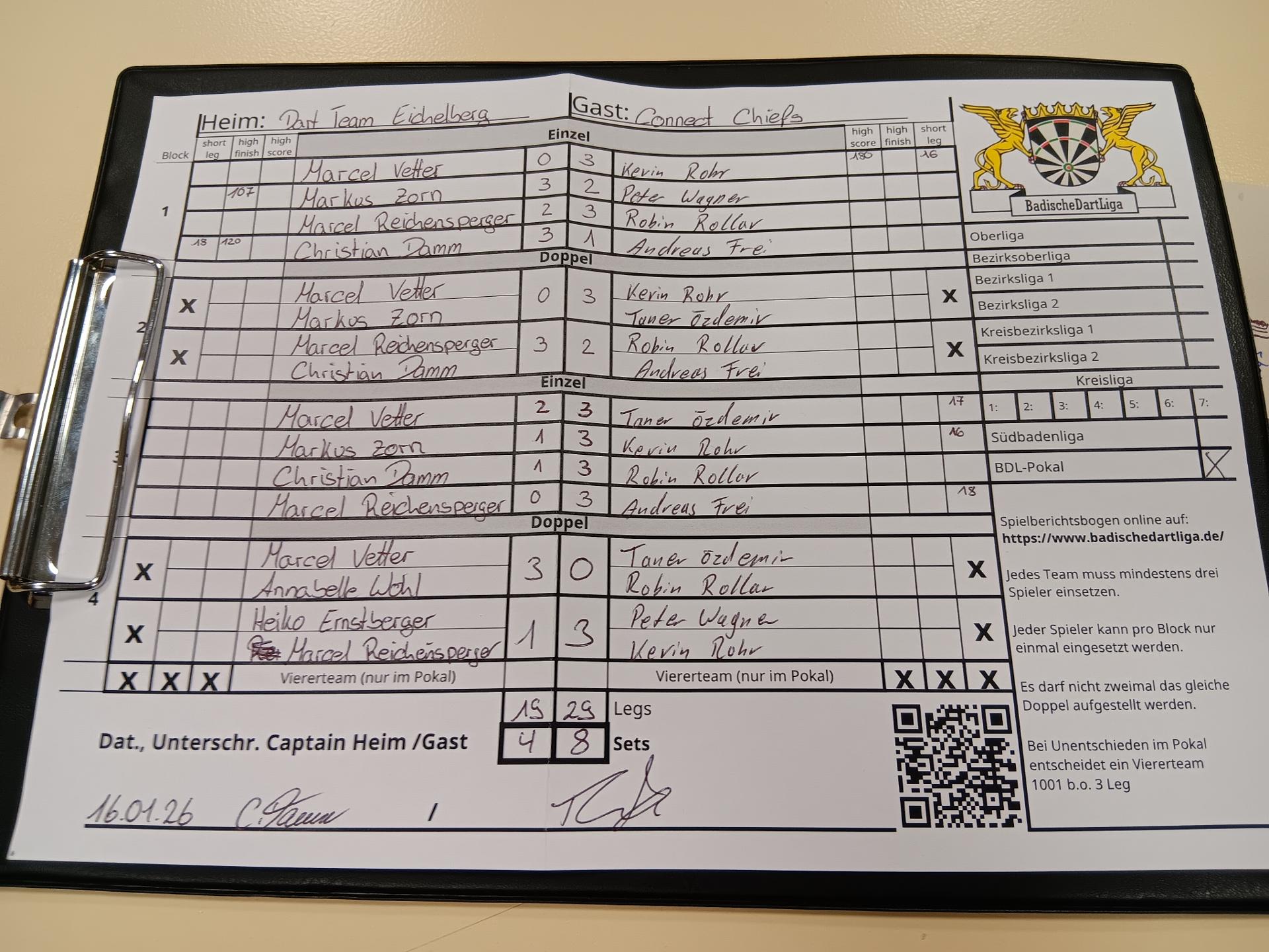 | HEIM: | Dart Team Eichelberg | GAST: | Connect Chiefs | |||||
