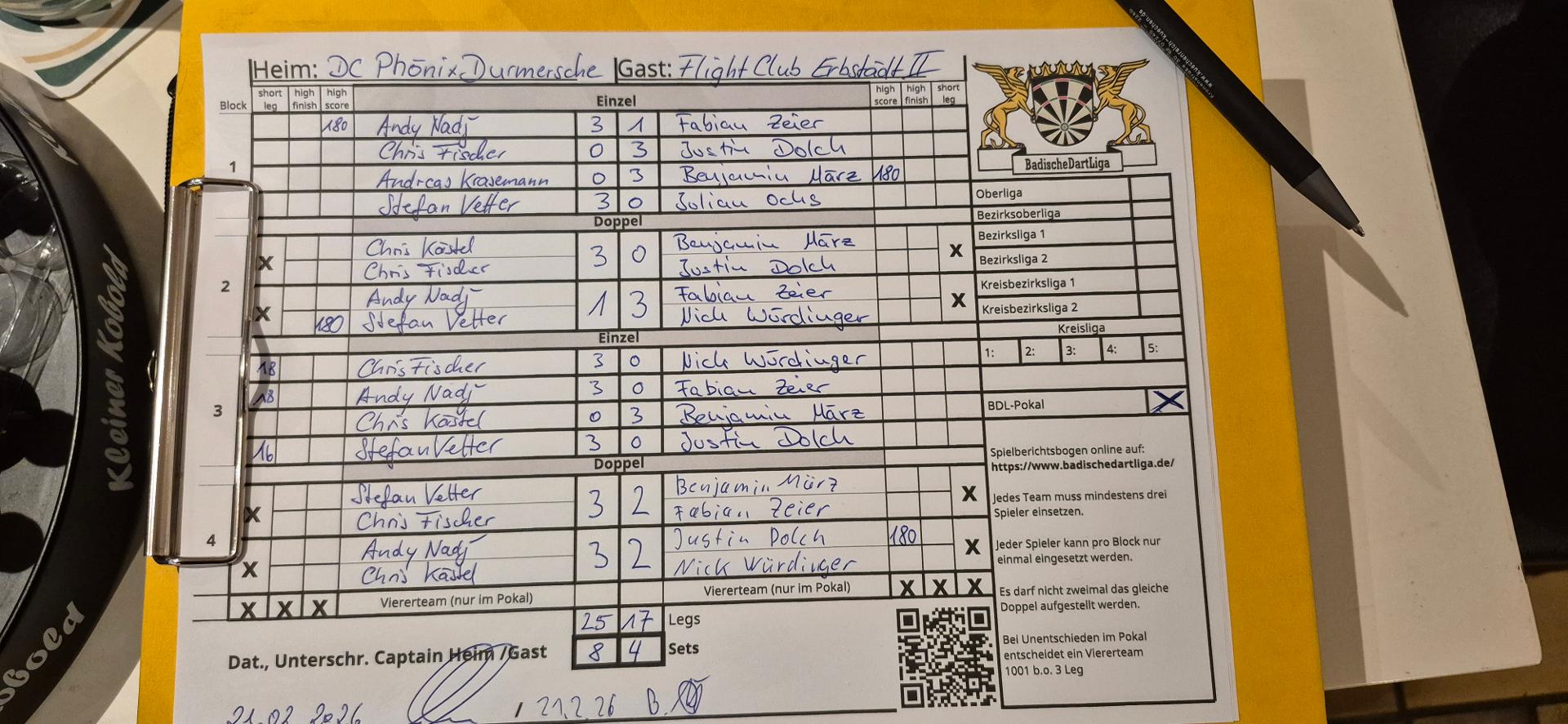 | Ergebnis: | 25 : 17 | - Legs | ||||||