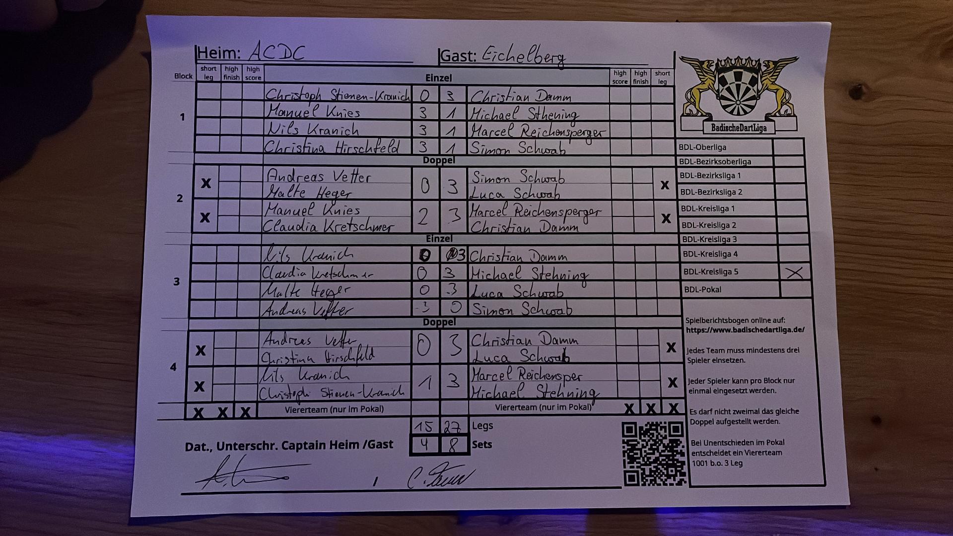 | HEIM: | ACDC (Augustiner Checkout Darts Club) | GAST: | Dart Team Eichelberg | |||||