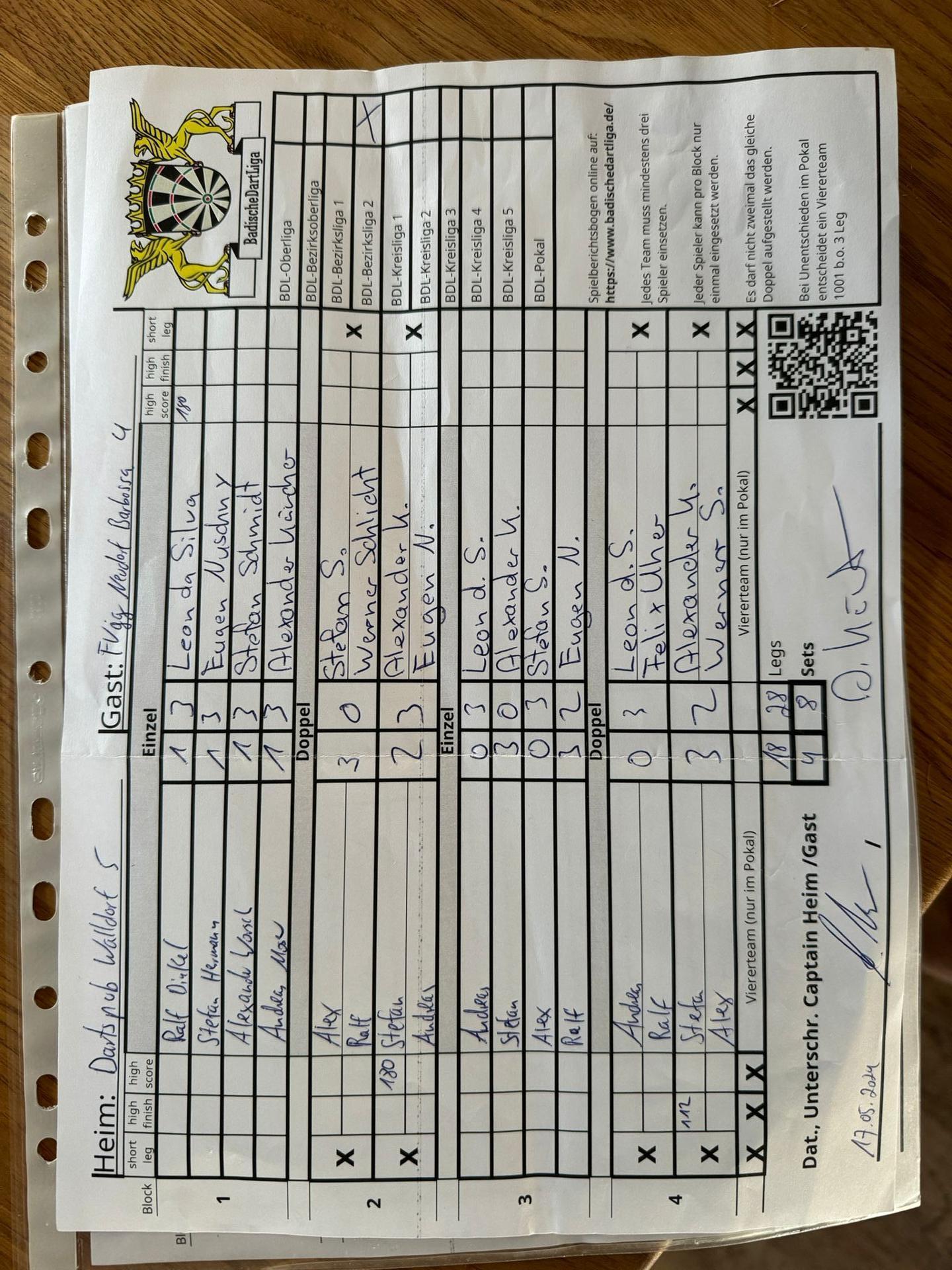 | HEIM: | Dartspub Walldorf 5 | GAST: | FVgg Neudorf Barbossa 4 | |||||