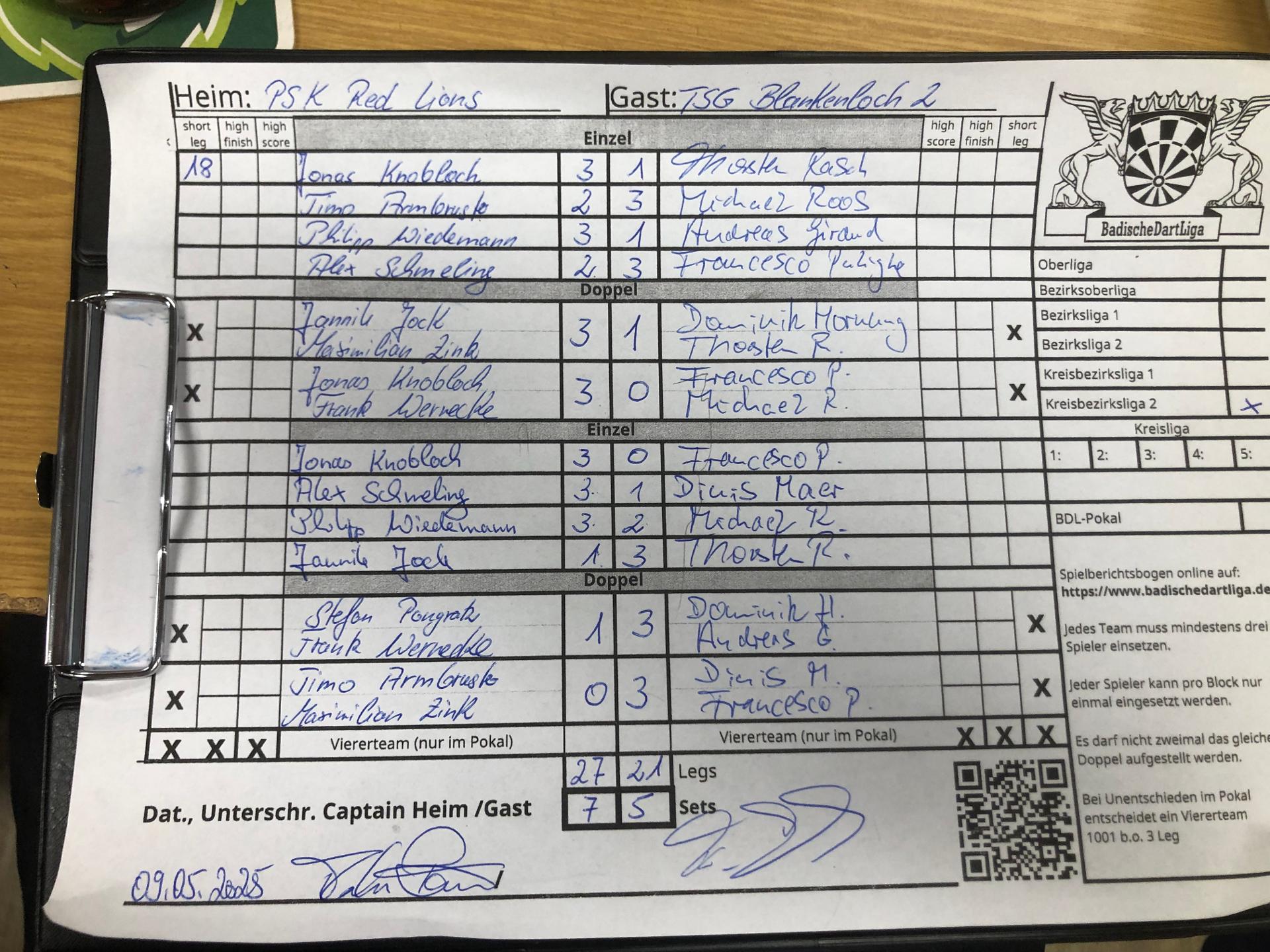 | Ergebnis: | 27 : 21 | - Legs | ||||||